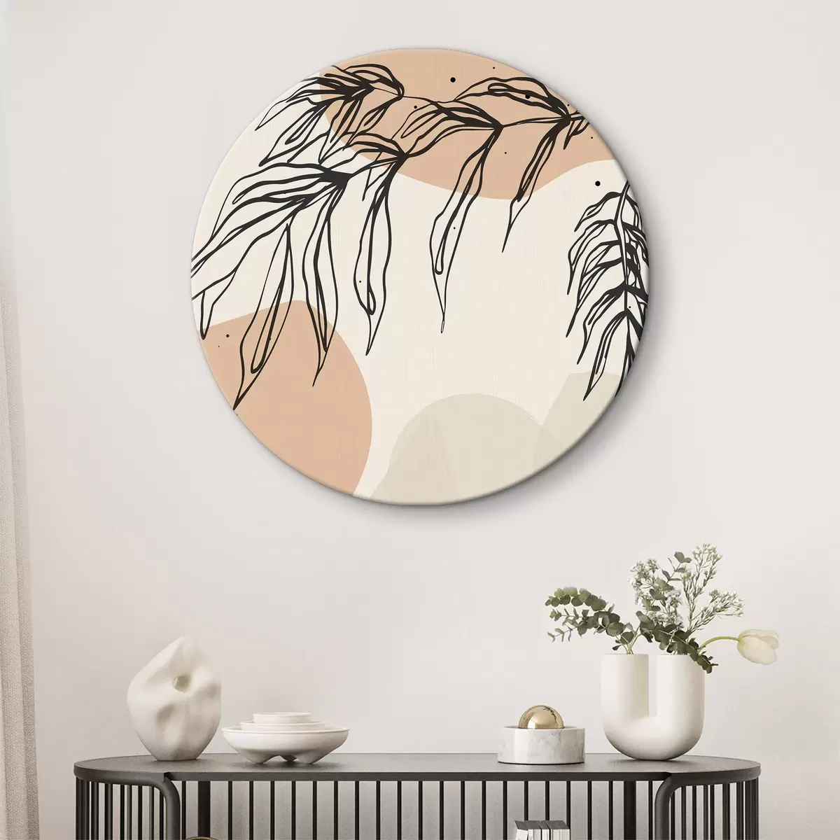 Quadri rotondi Foglie astratte, linee di forme diverse r36186
