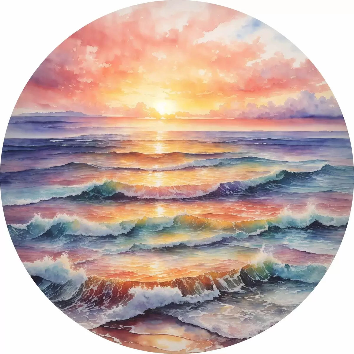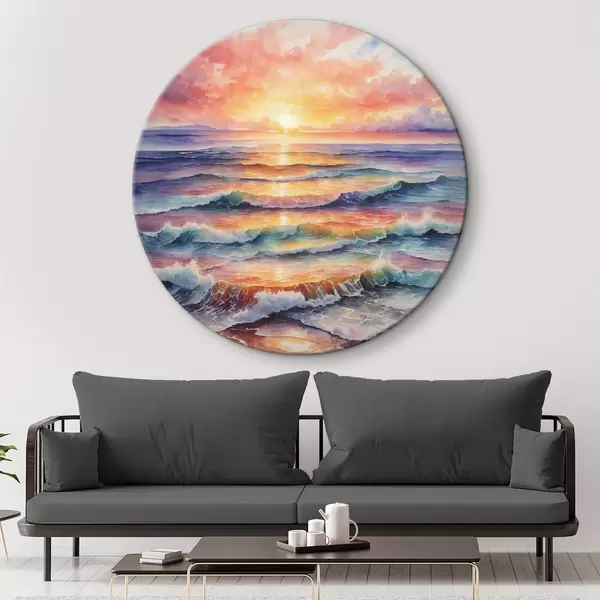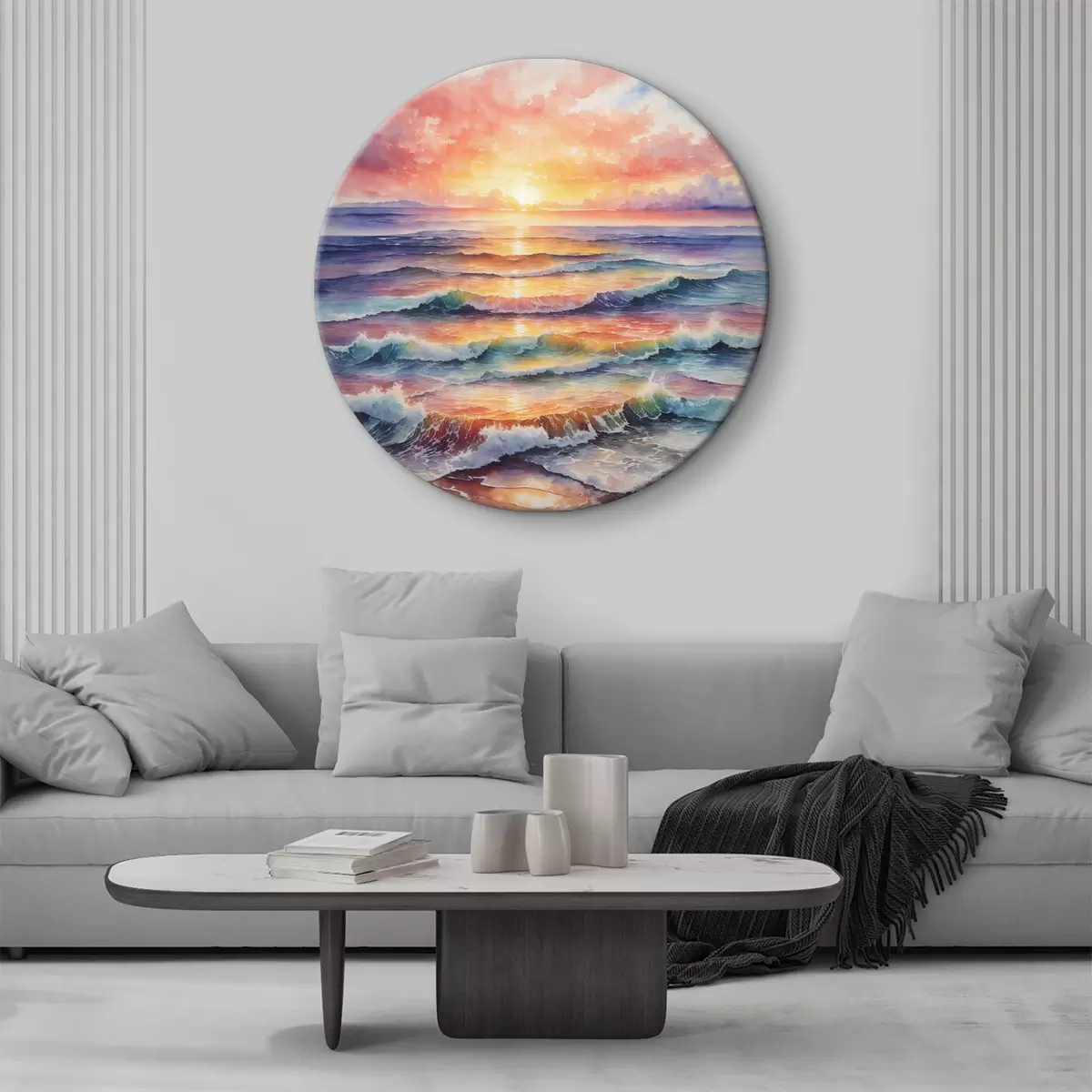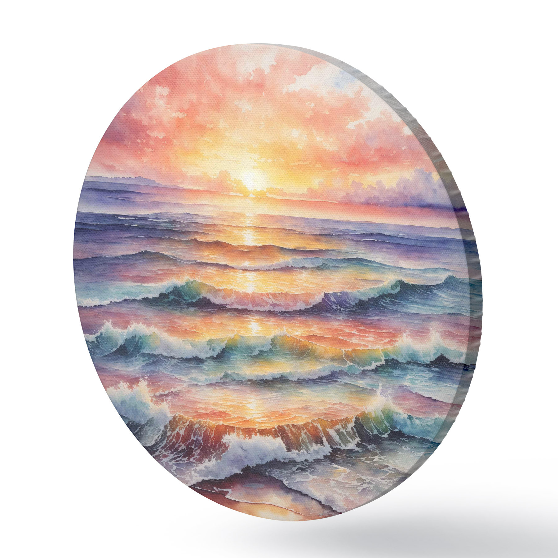 Quadri rotondi Vista del tramonto dalla spiaggia in acquerello r36241