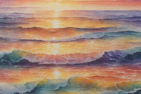 Immagine Vista del tramonto dalla spiaggia in acquerello Nr r36241