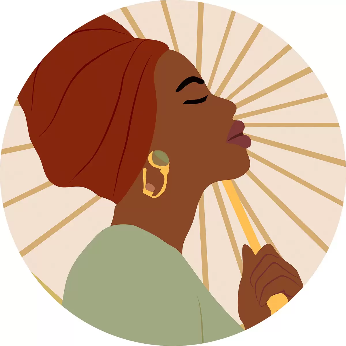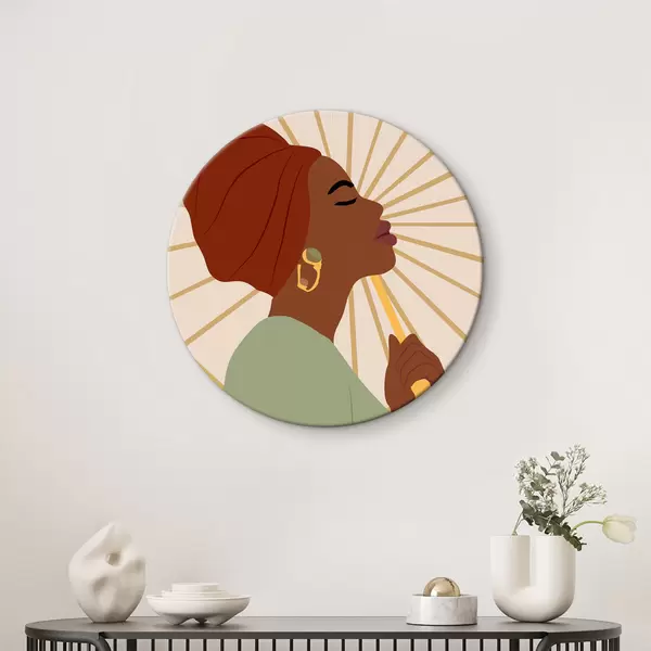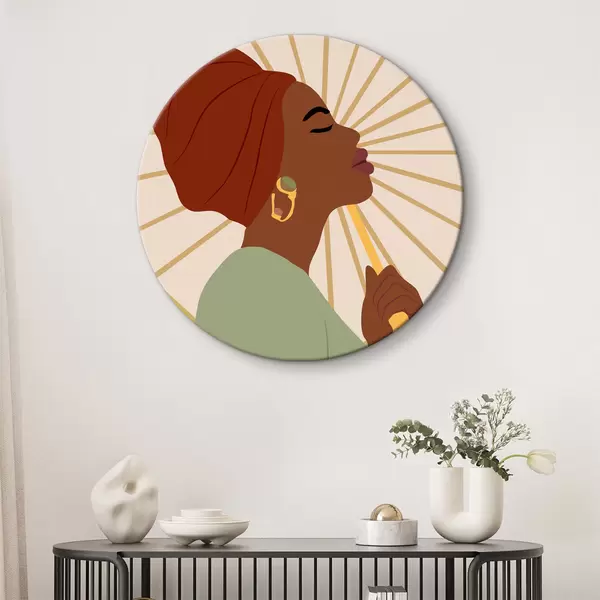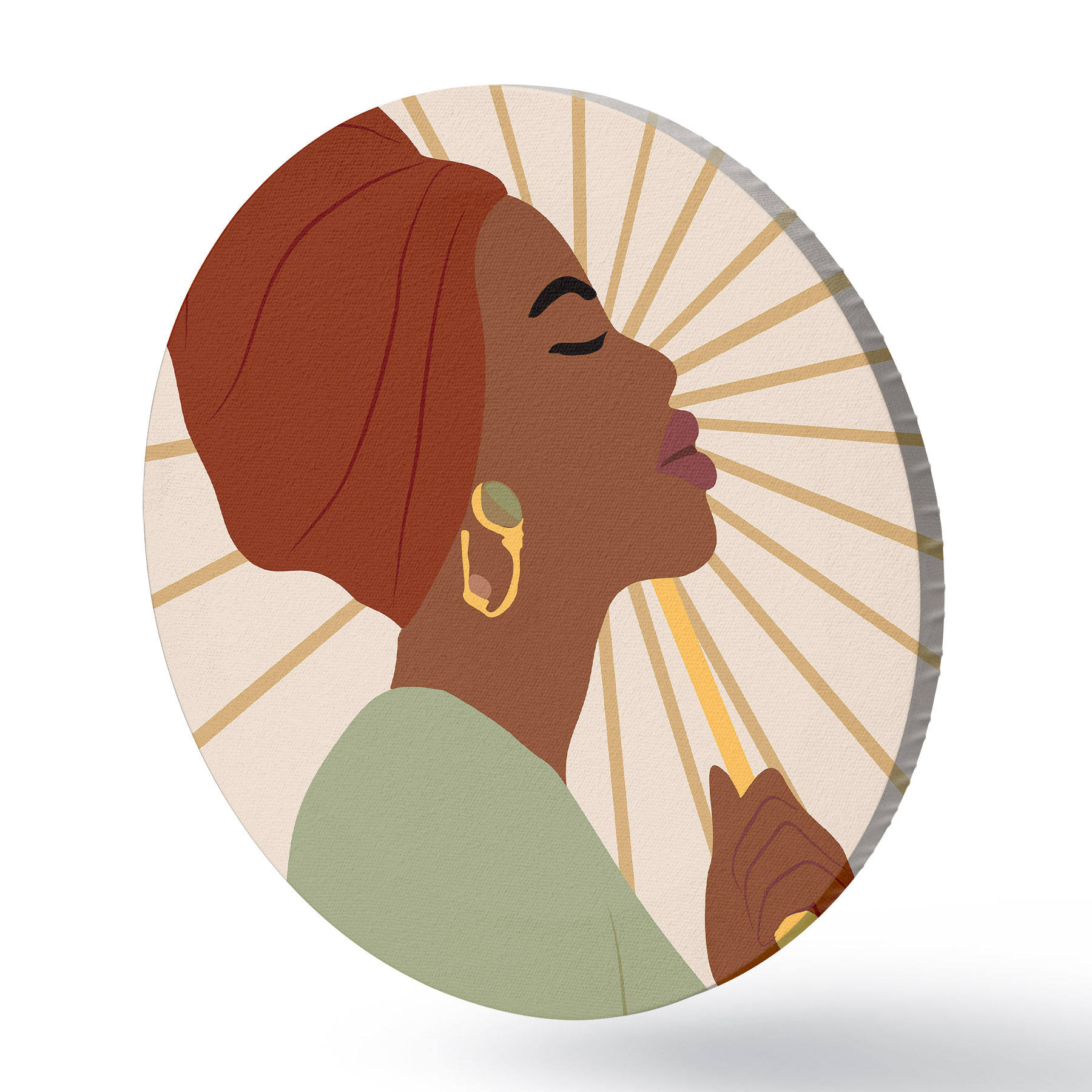 Quadri rotondi Donna afro alla moda con ombrello r36340