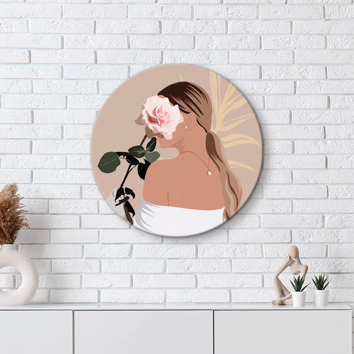Quadri rotondi Ragazza con rosa rosa stile astratto boho r36366
