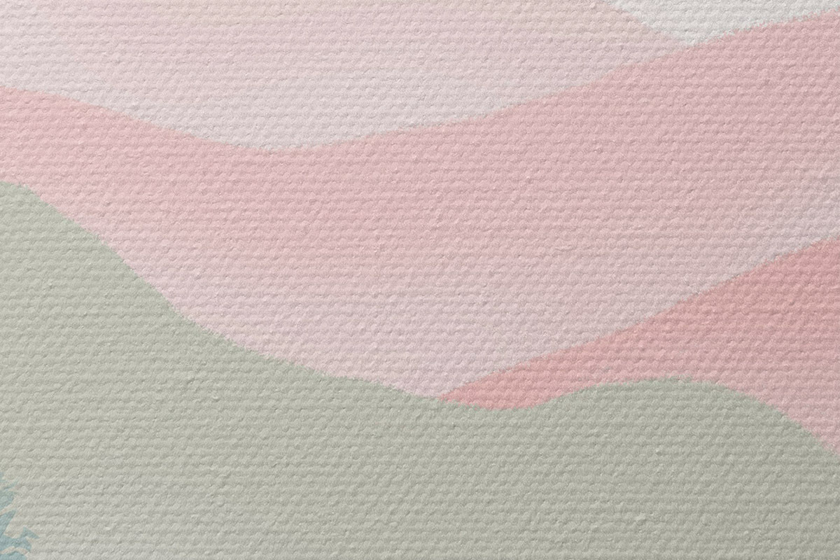 Immagine Montagne nebbiose con foresta di pini, colori naturali tenui, rosa e verde Nr r36394