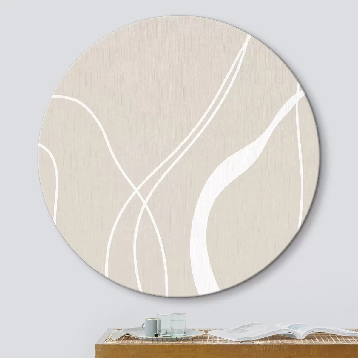 Quadri rotondi Linee astratte bianche su sfondo beige r36488
