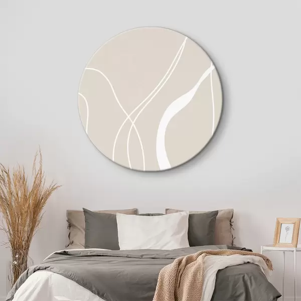 Quadri rotondi Linee astratte bianche su sfondo beige r36488