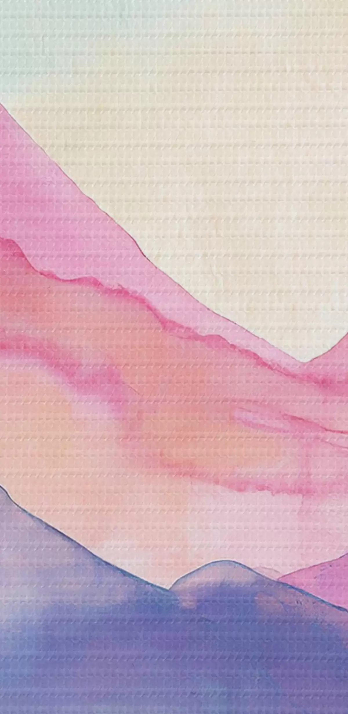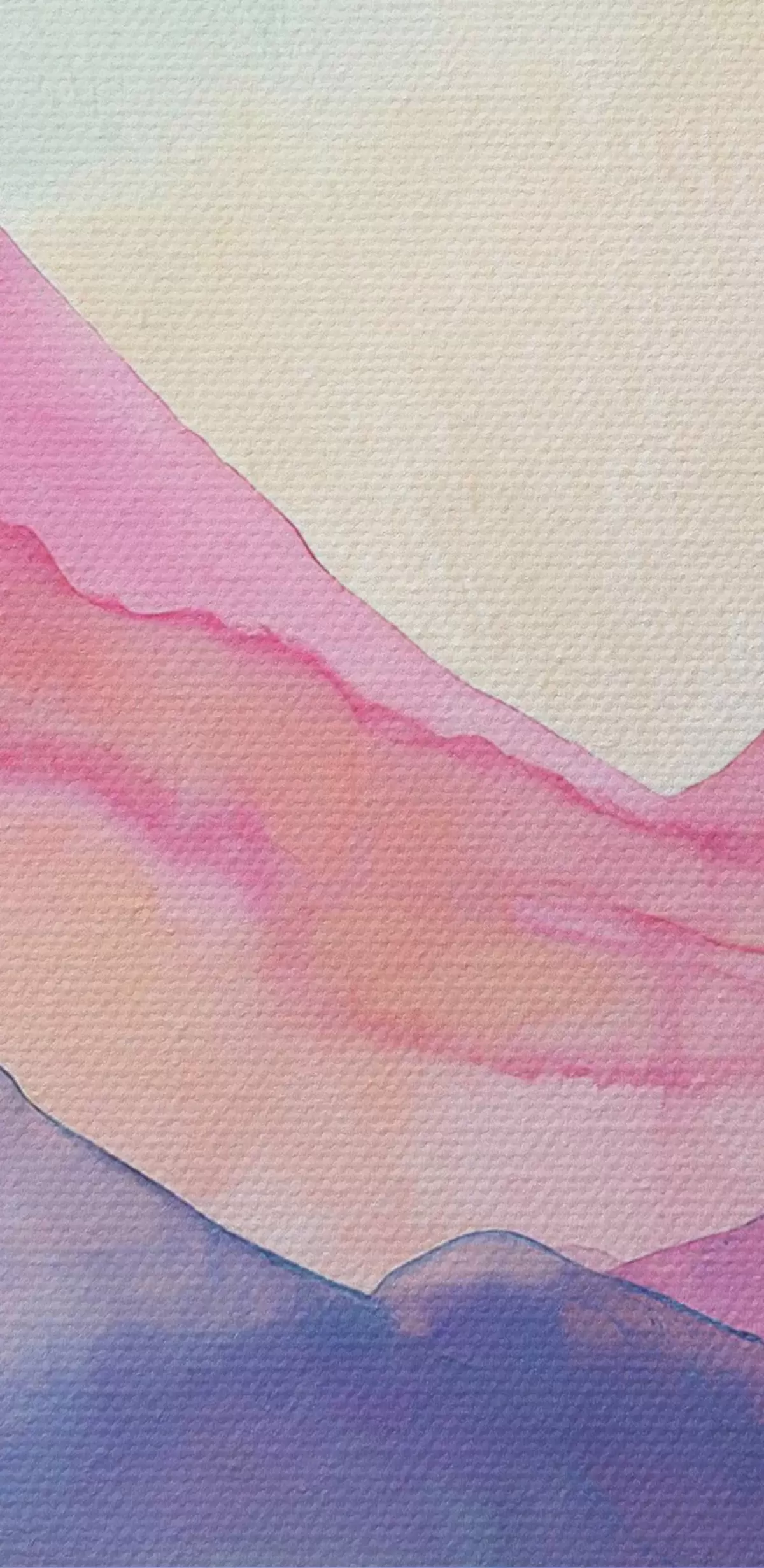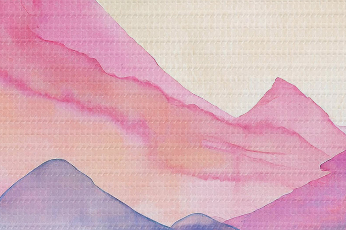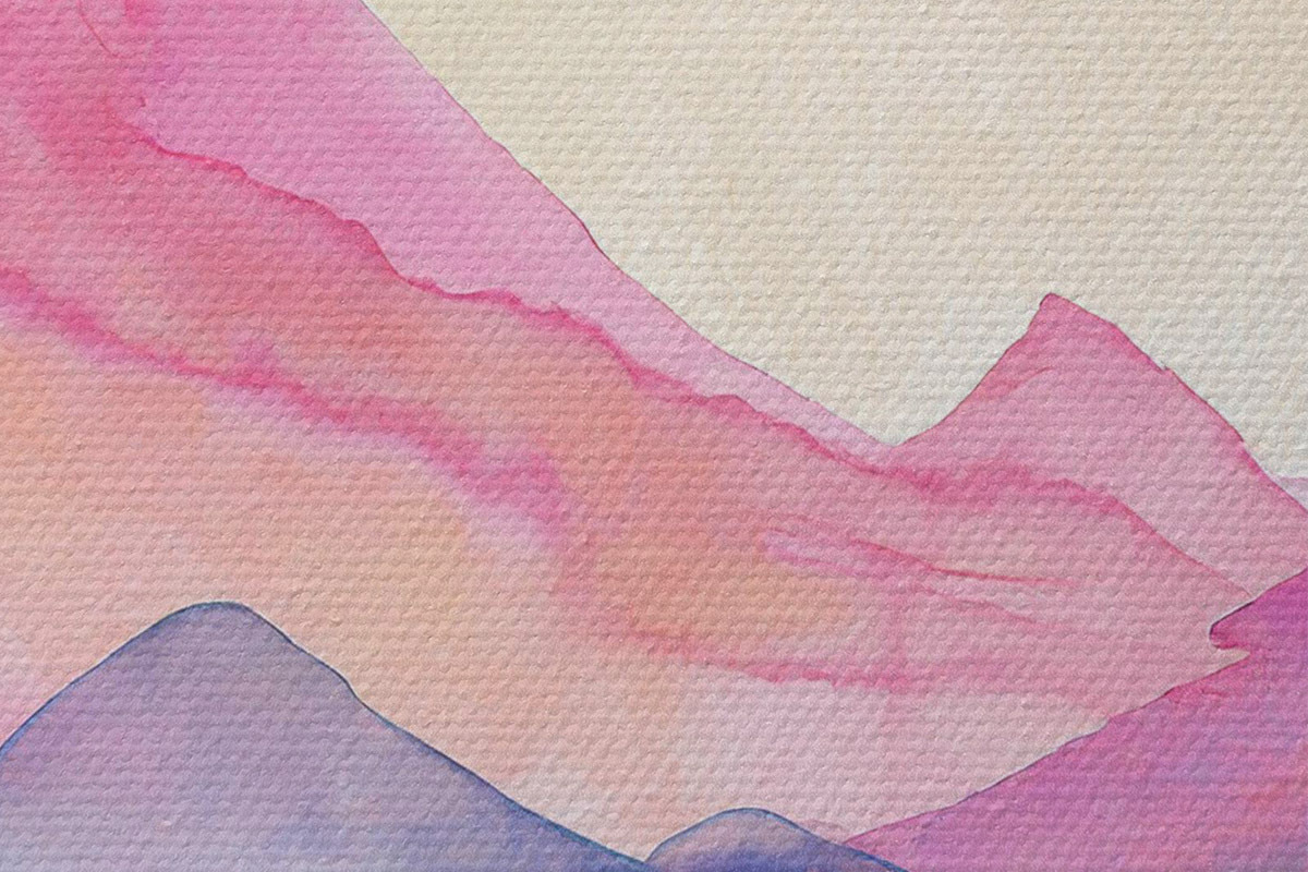 Immagine Paesaggio montano acquerellato, alba, colori tenui viola, rosa e blu Nr r36496