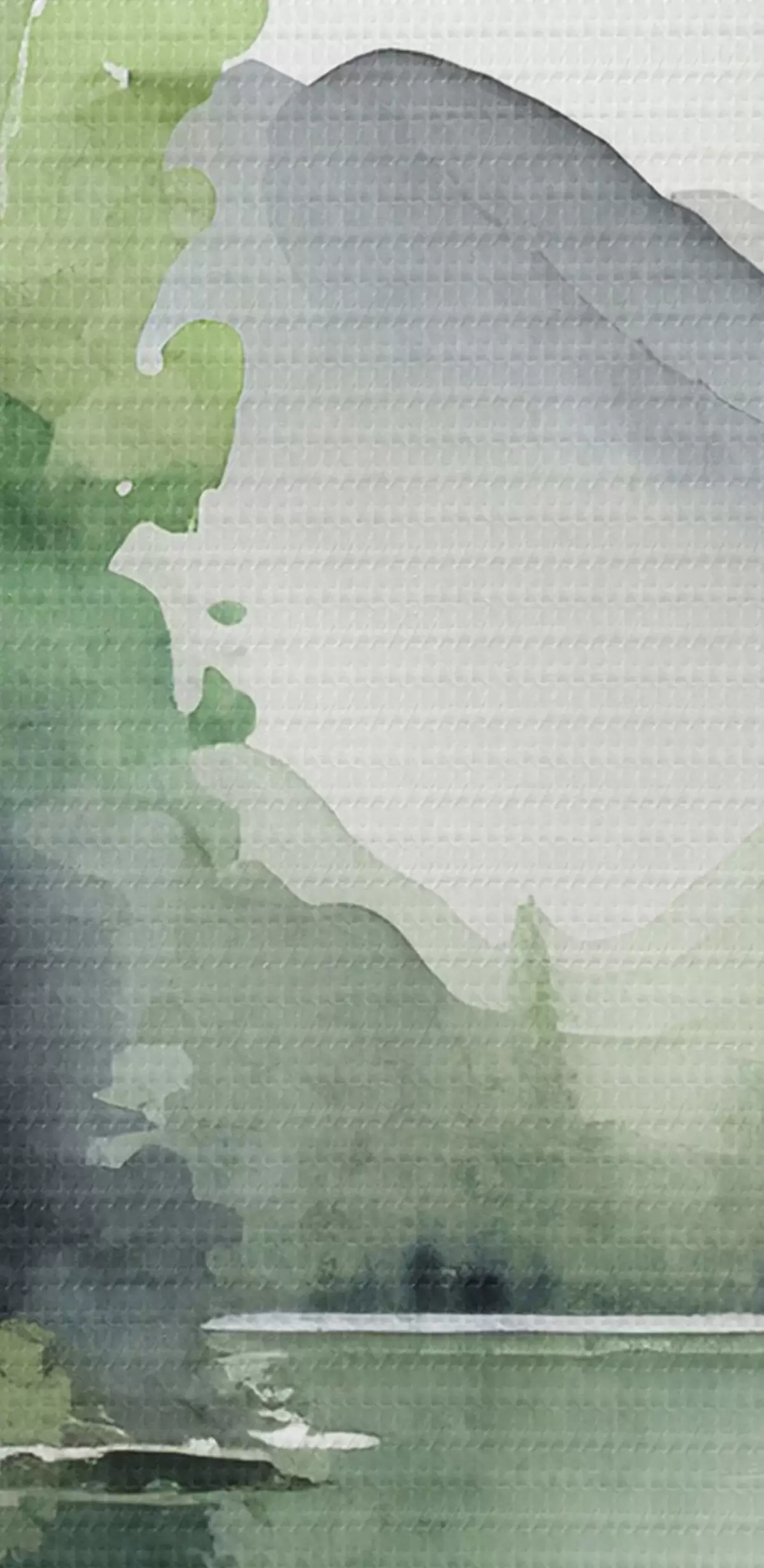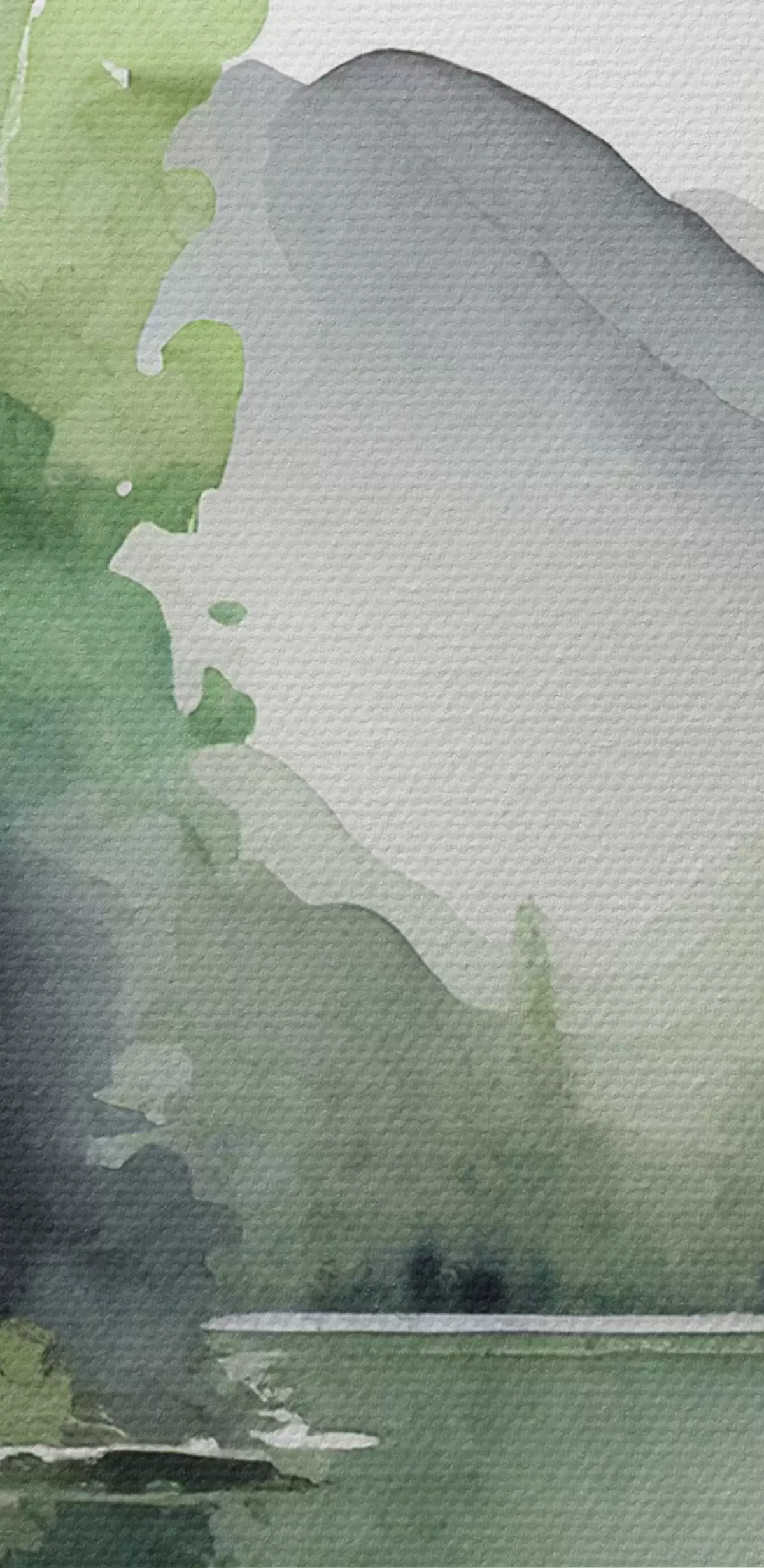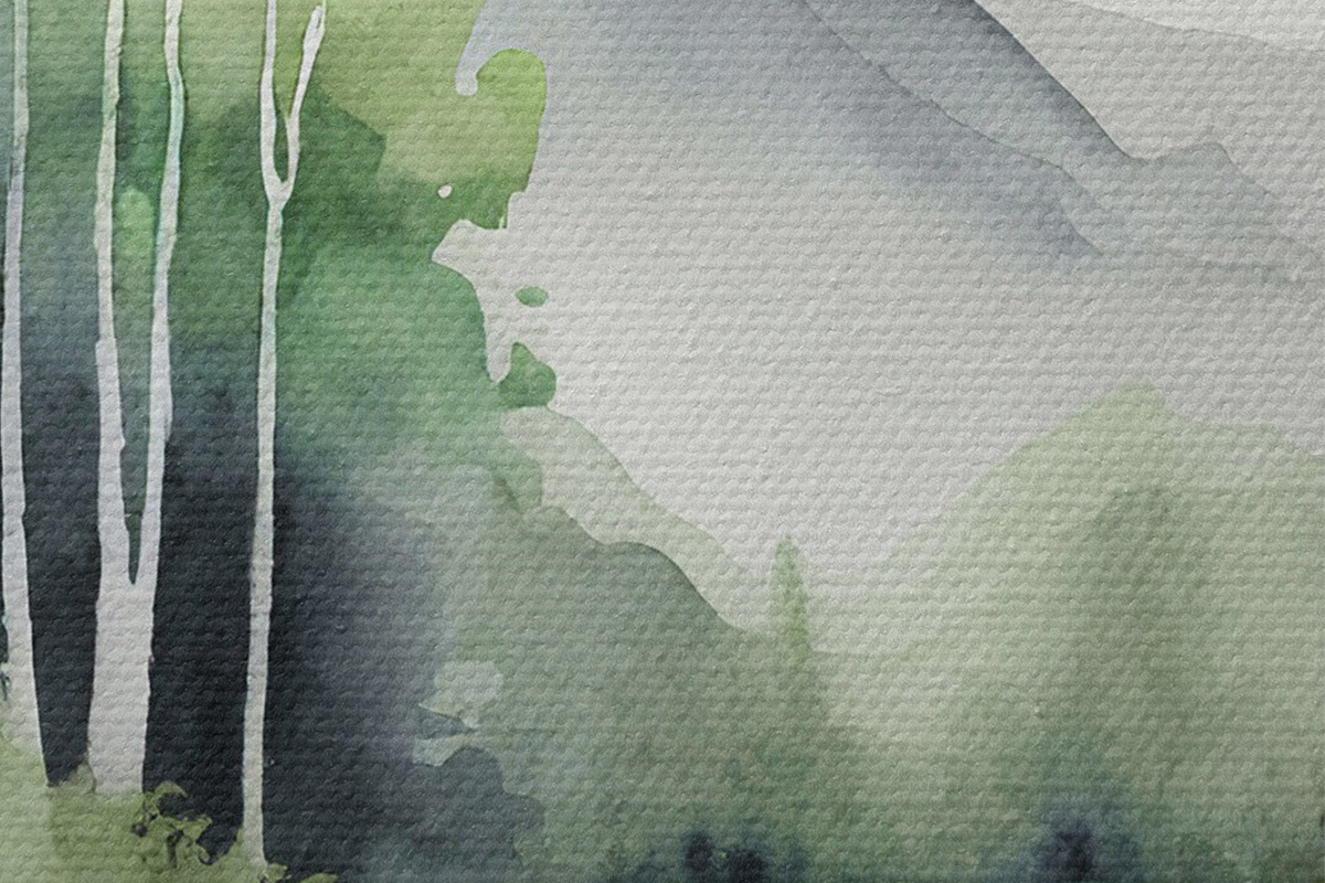 Immagine Paesaggio acquerellato di lago e foresta, primavera, verde naturale colori tenui Nr r36503