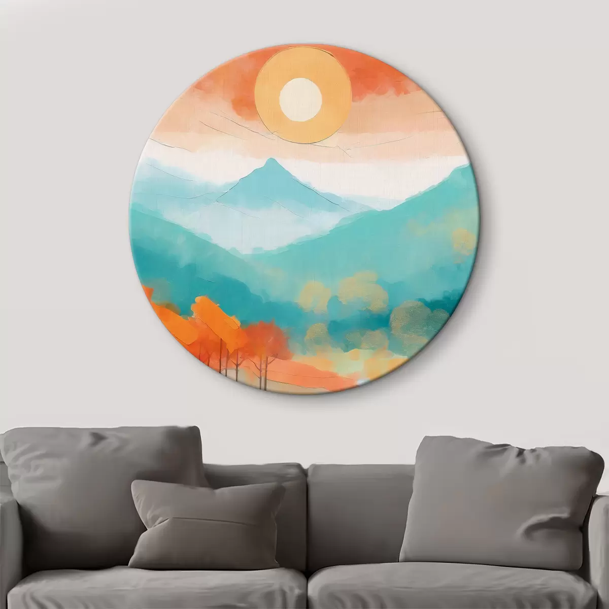 Quadri rotondi Il calore dell'autunno in un sereno paesaggio di montagna r36506