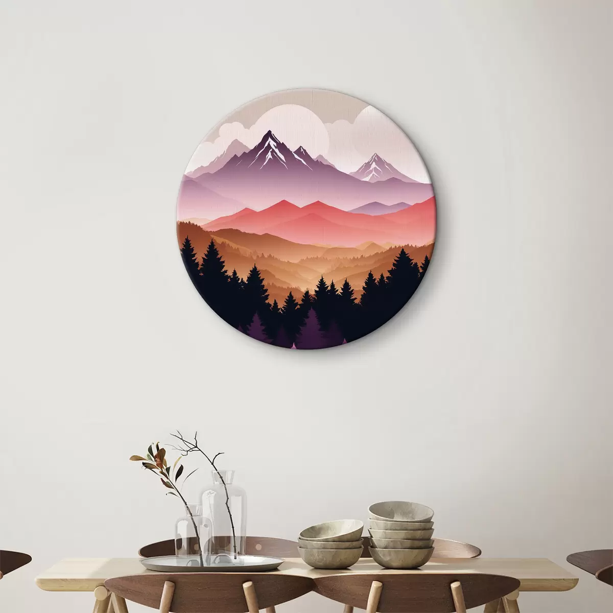 Quadri rotondi Tramonto sulle montagne tranquille r36527