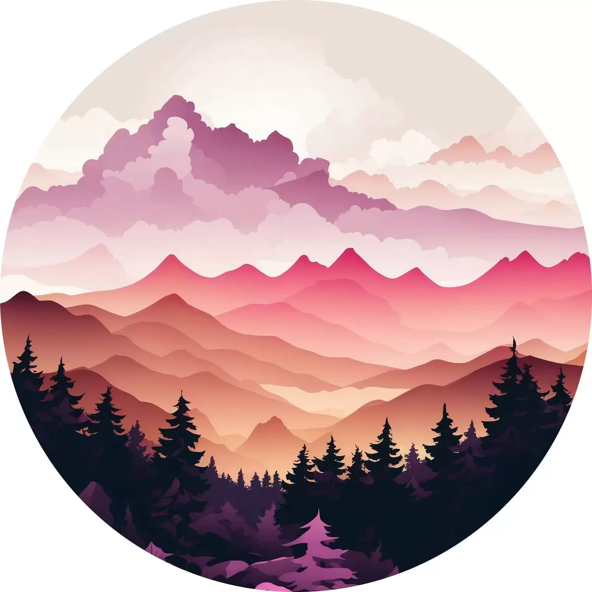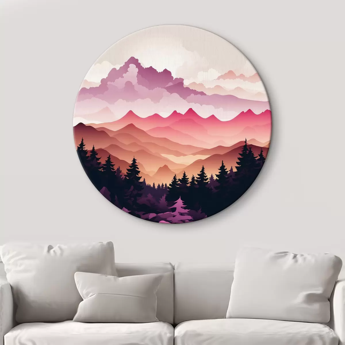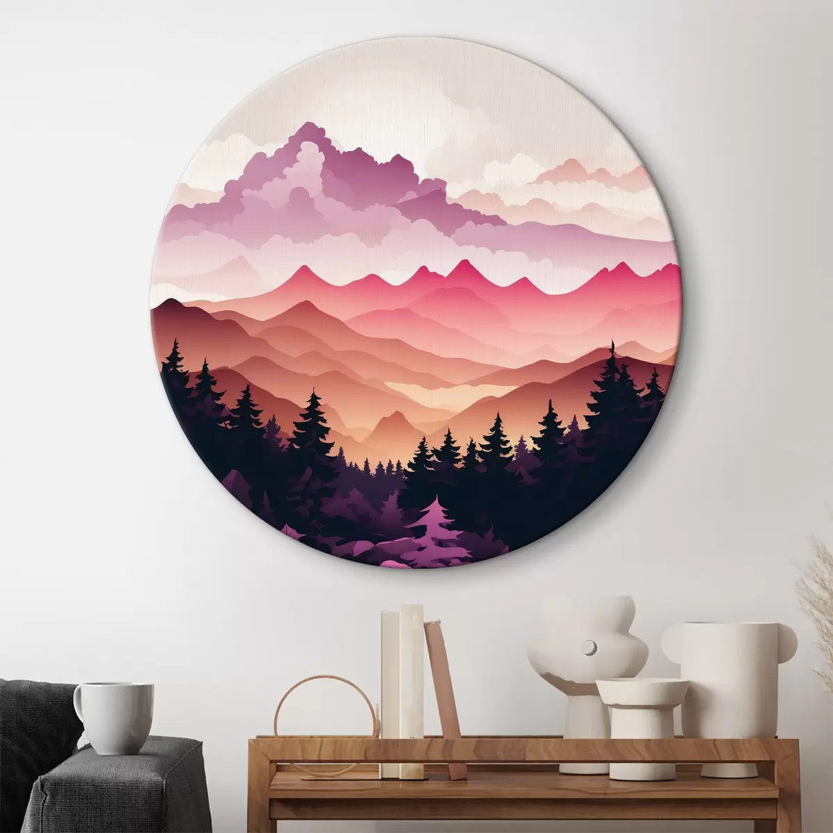 Quadri rotondi Tramonto sulle montagne tranquille r36528