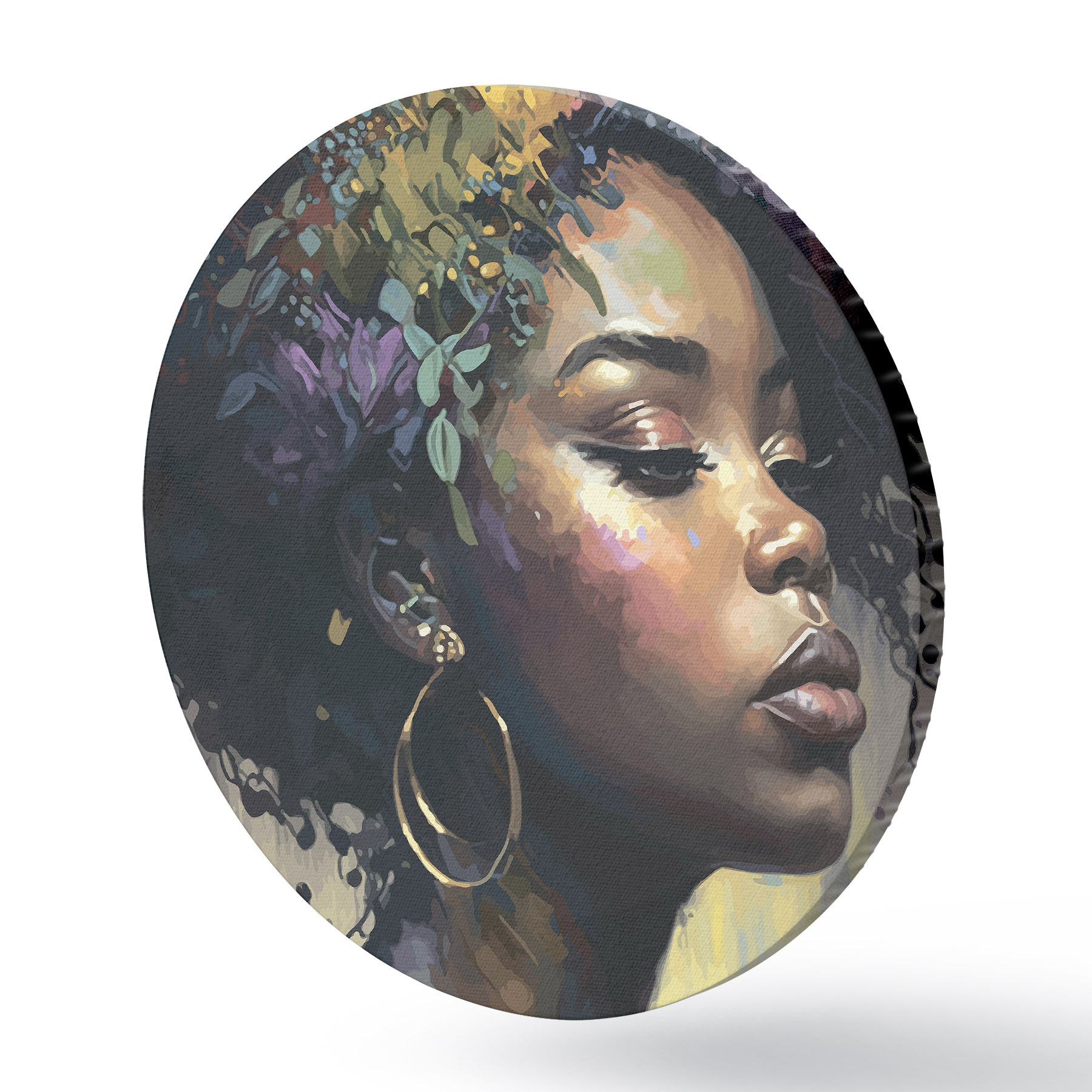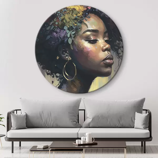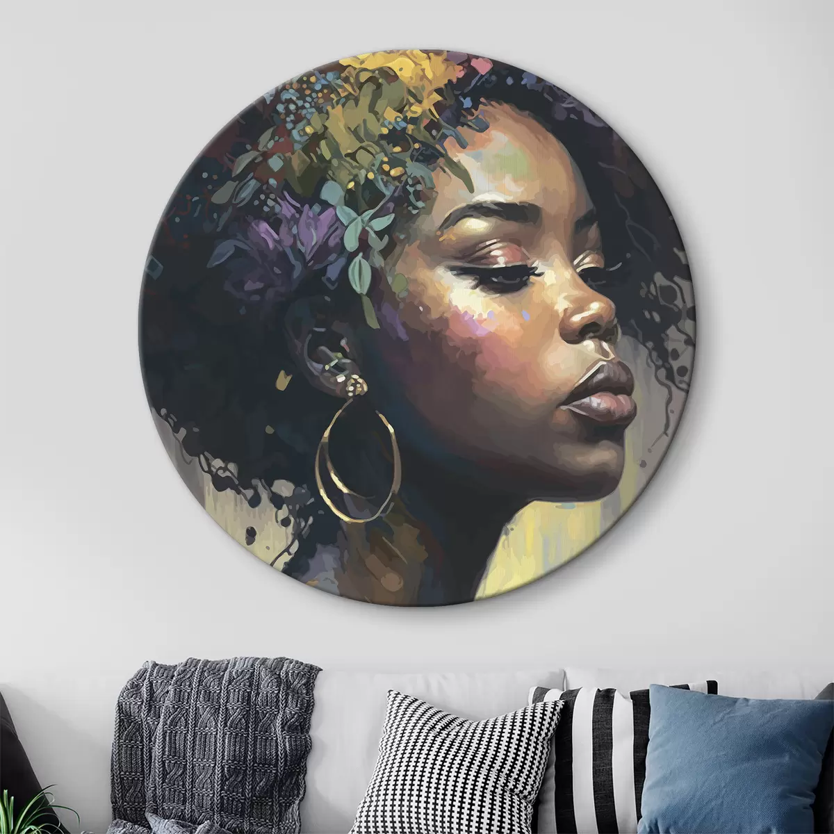 Quadri rotondi Bella donna nera con capelli colorati r36577