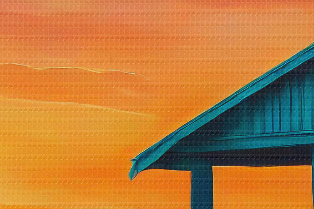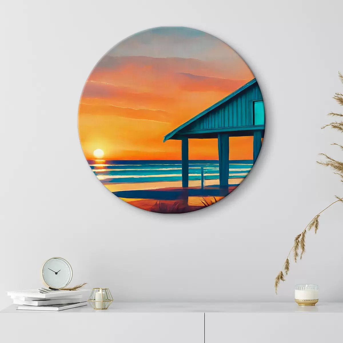 Quadri rotondi I colori del tramonto in un cottage sull'oceano r36580