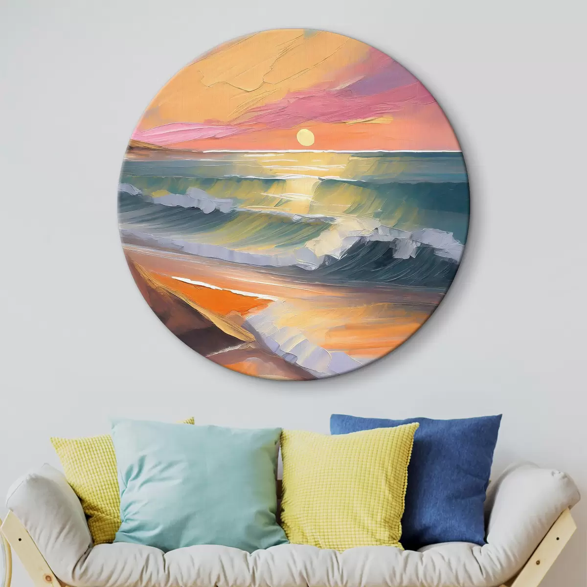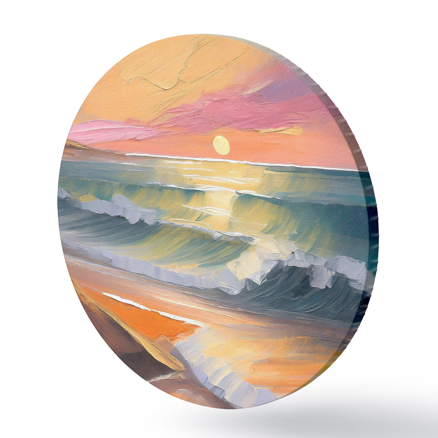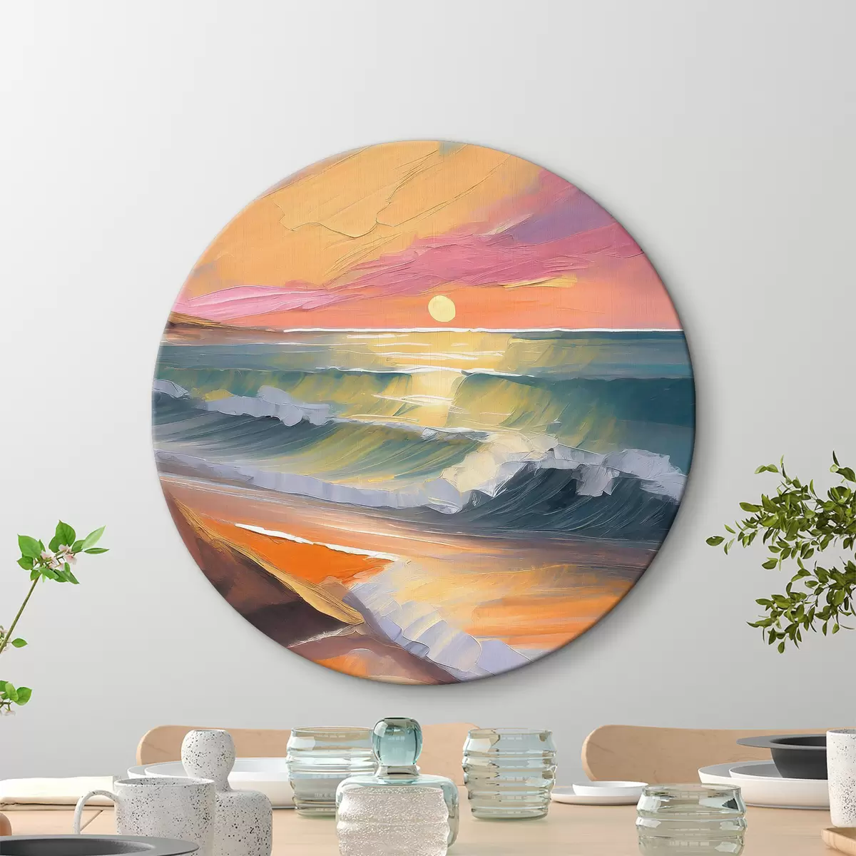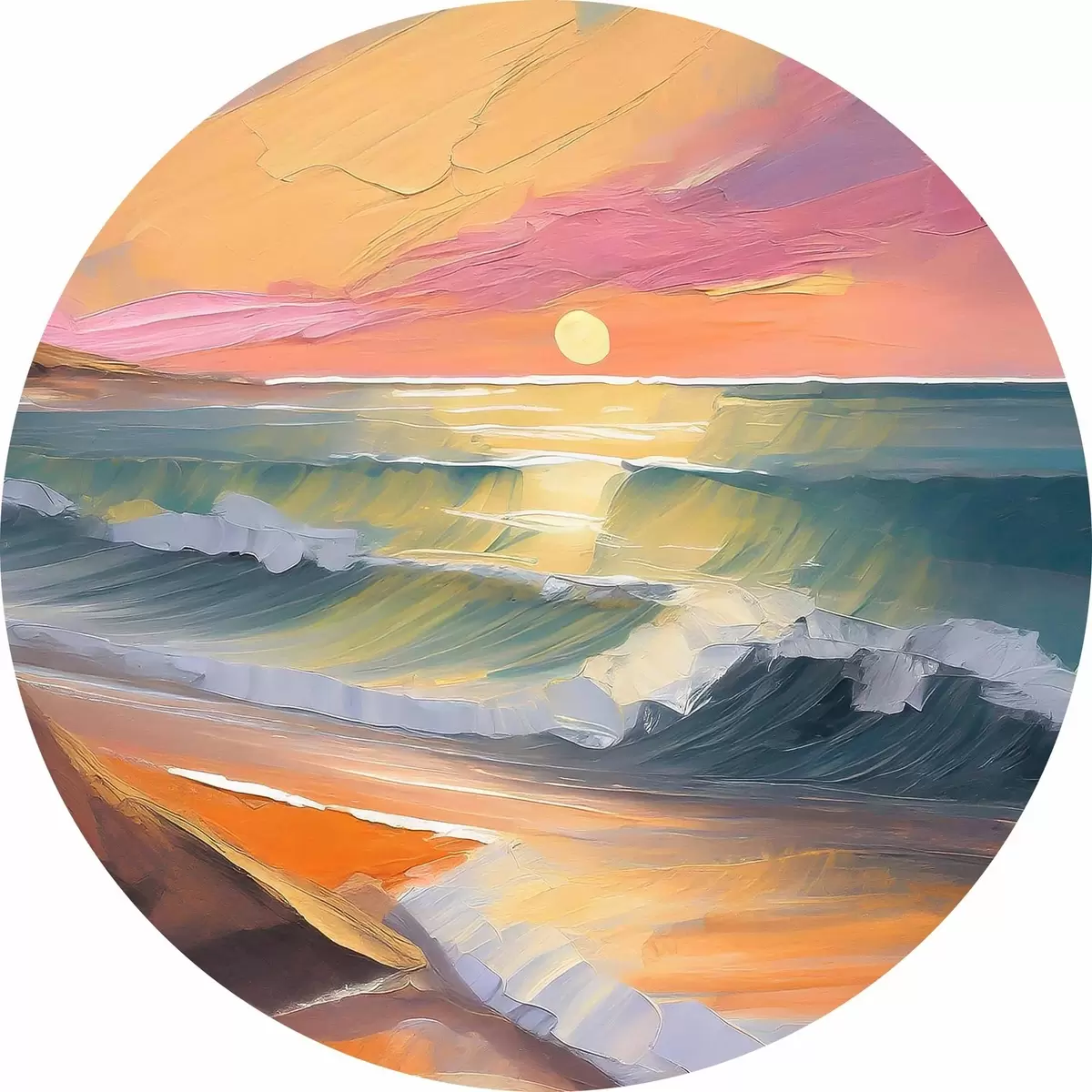 Quadri rotondi Riflessi del tramonto in vivaci pennellate r36586