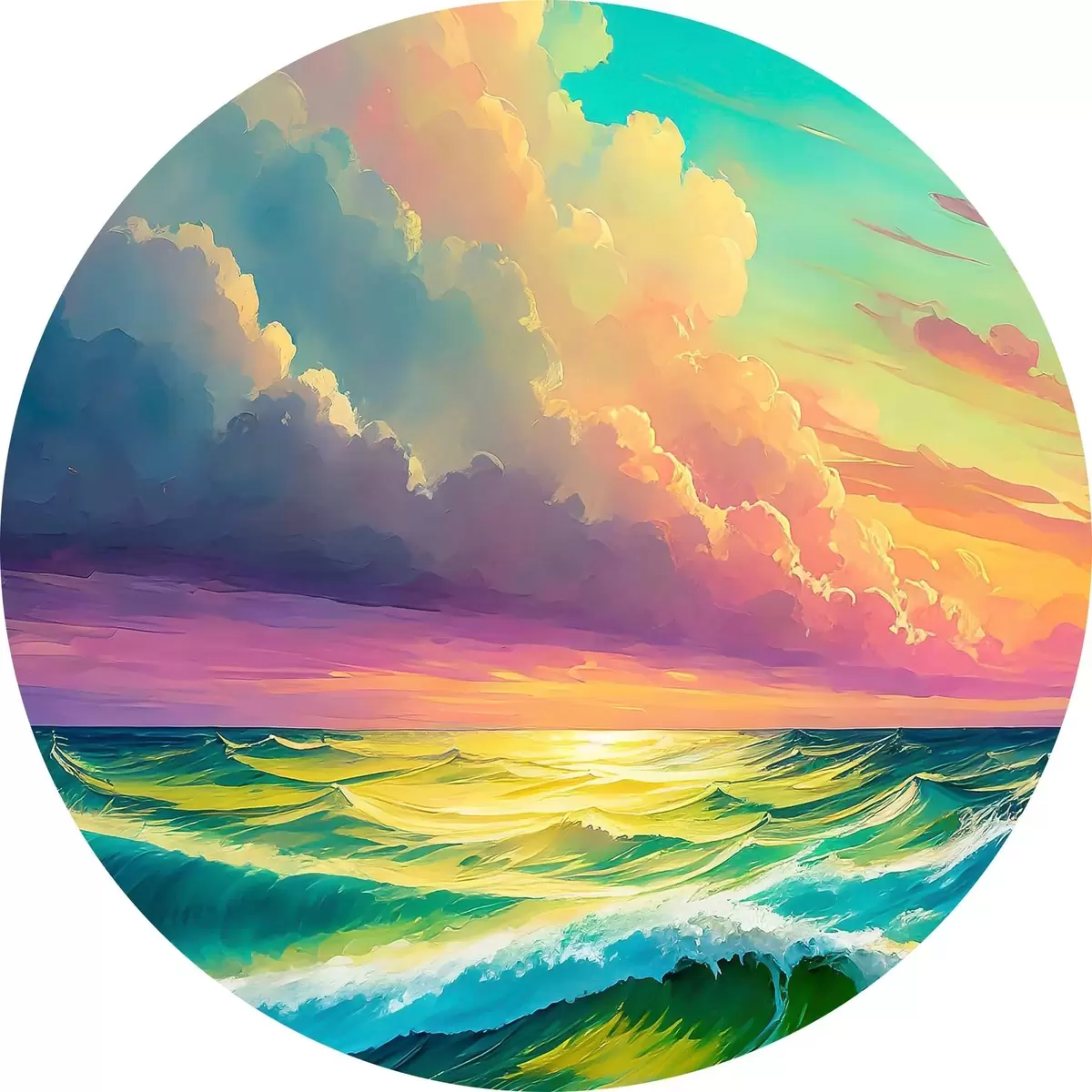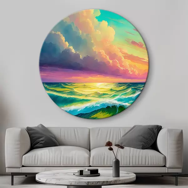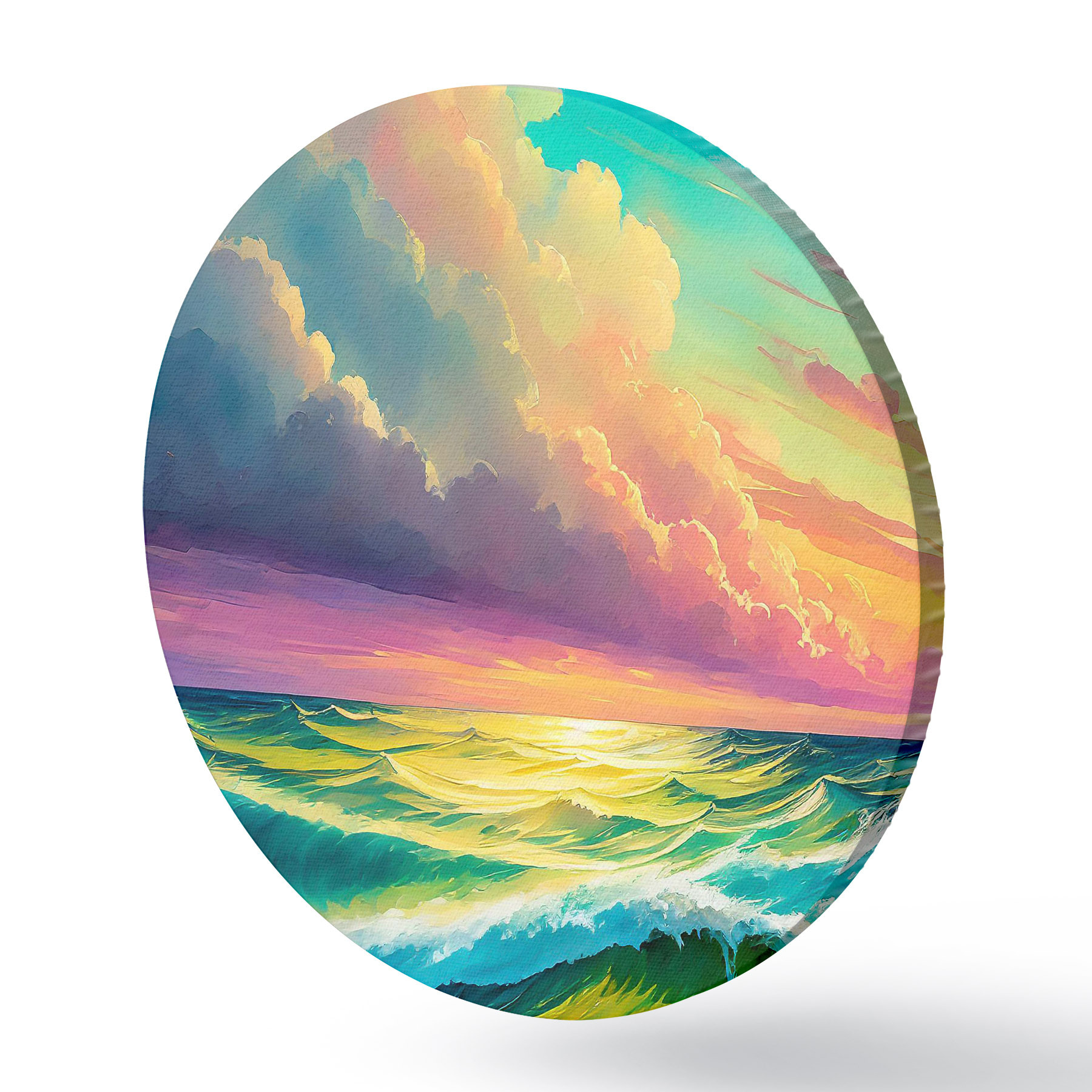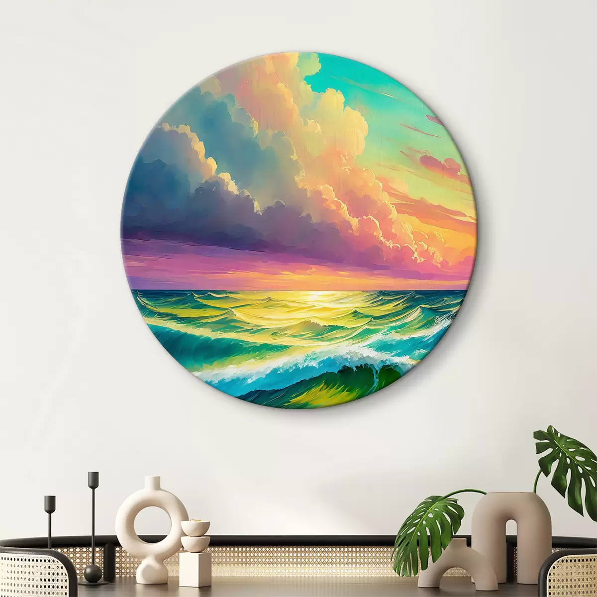 Quadri rotondi Le onde al tramonto danzano sotto il cielo dipinto r36589