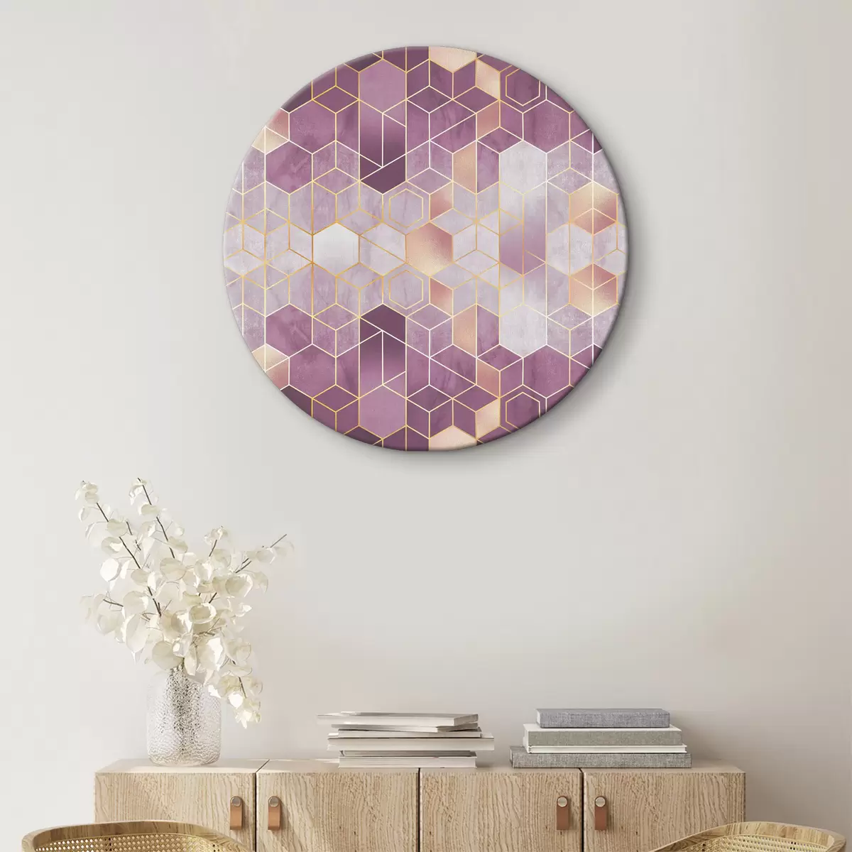Quadri rotondi Elegante motivo esagonale nei toni del viola r36602v1