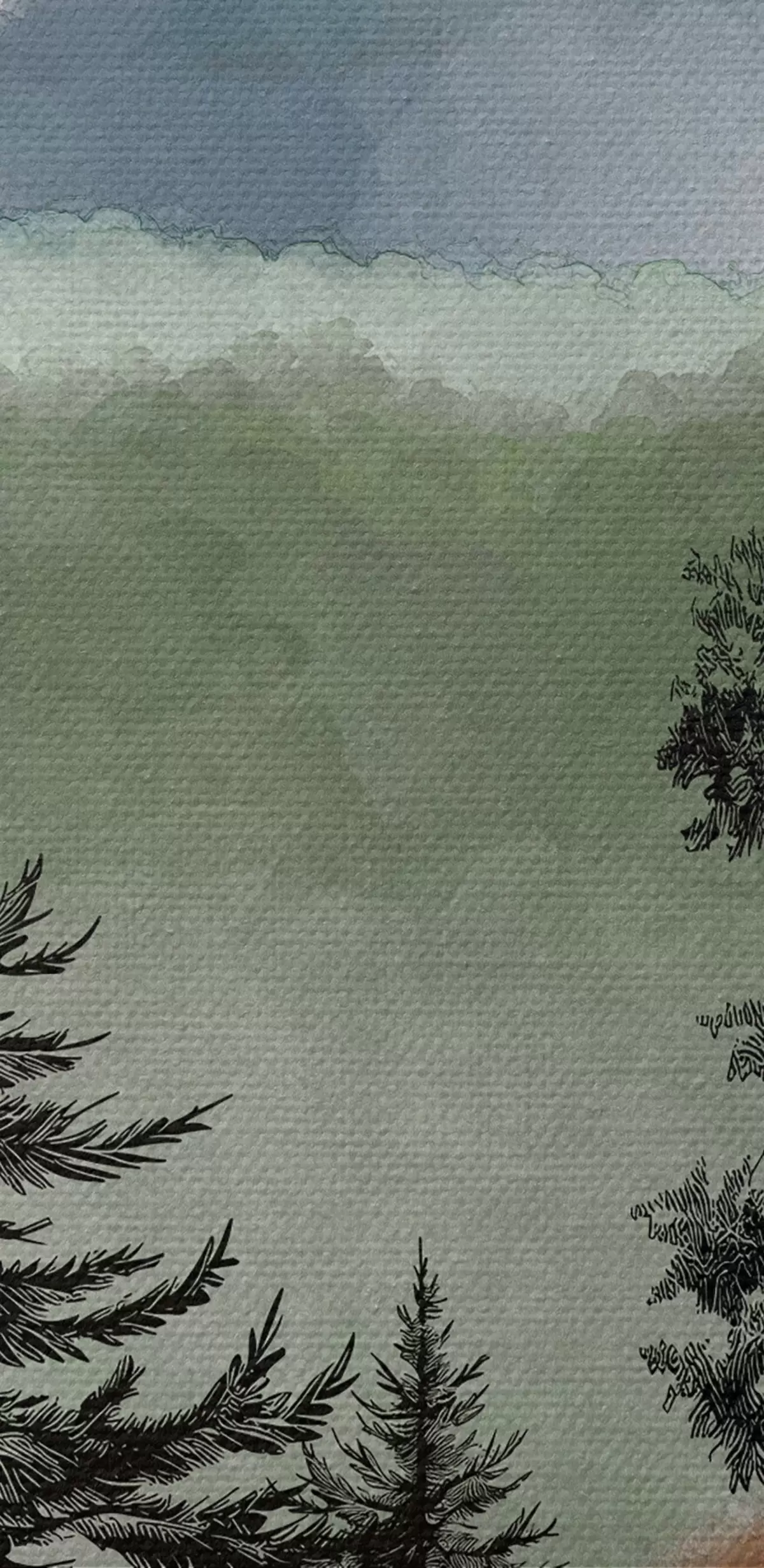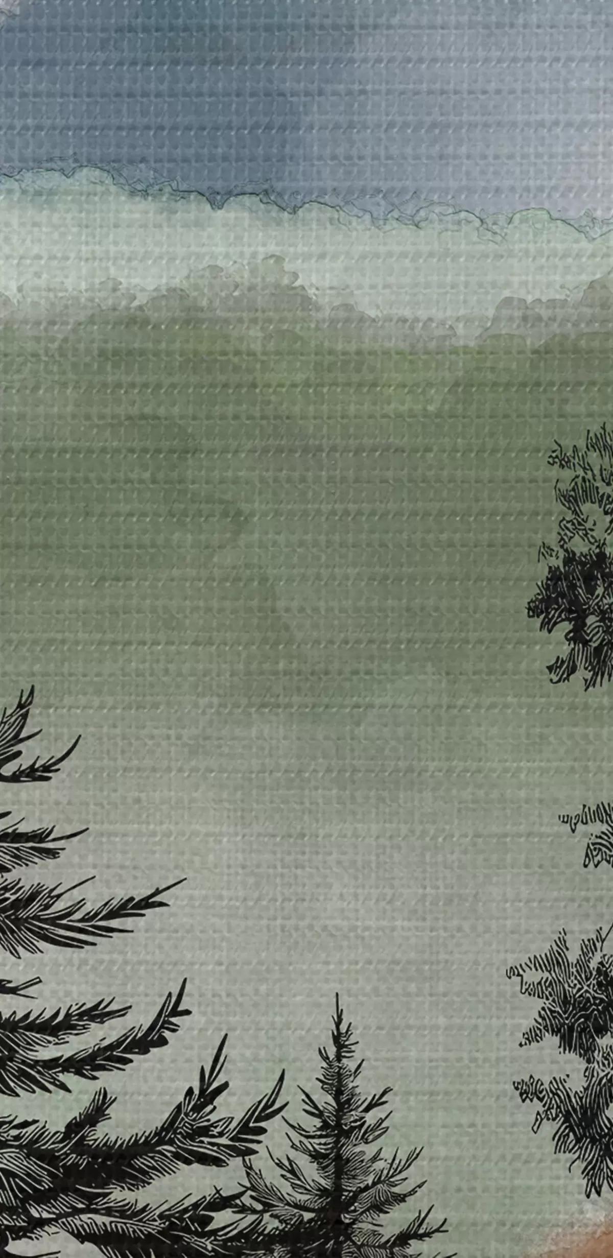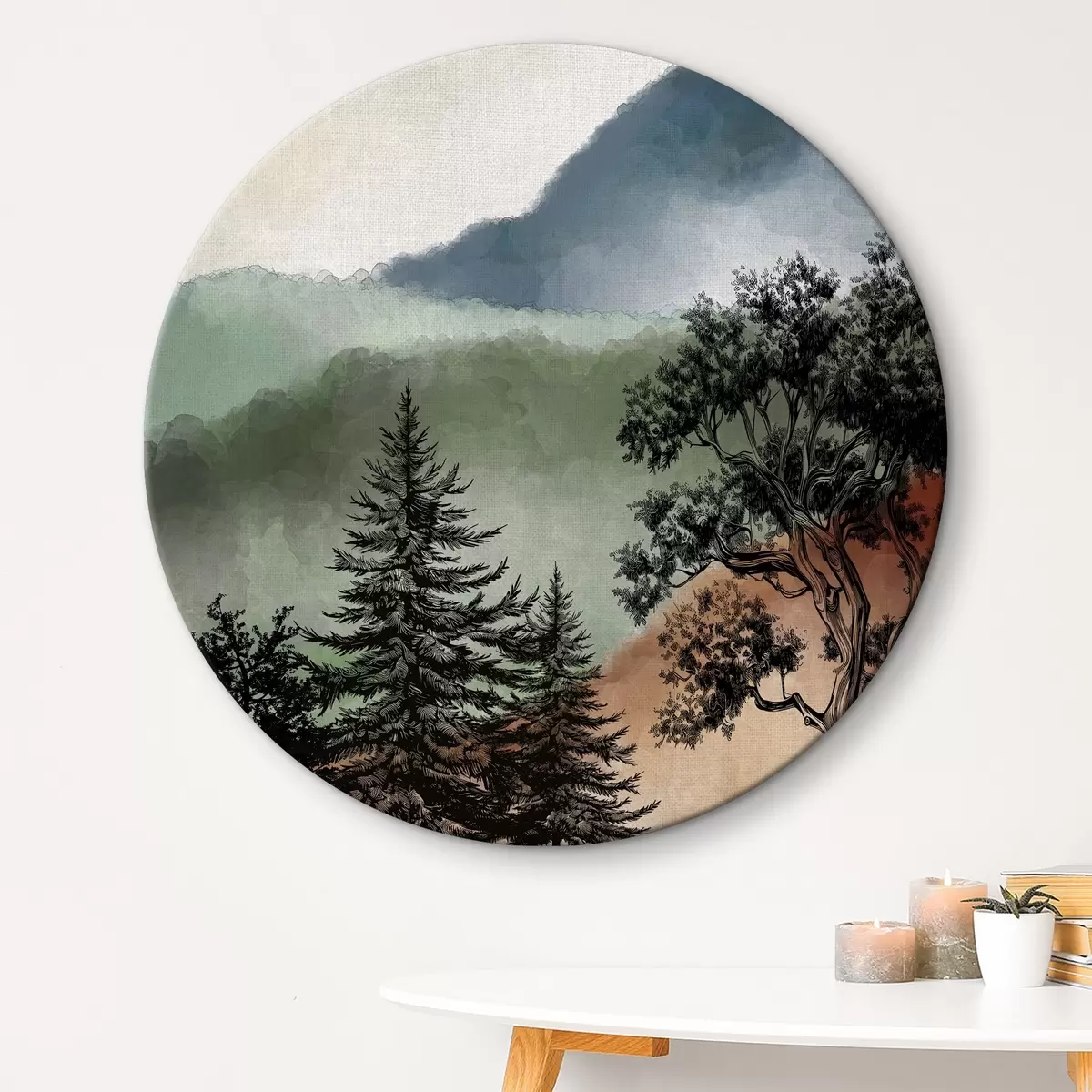 Quadri rotondi Acquerello di montagne e alberi r36604