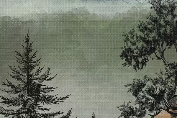 Quadri rotondi Acquerello di montagne e alberi r36604
