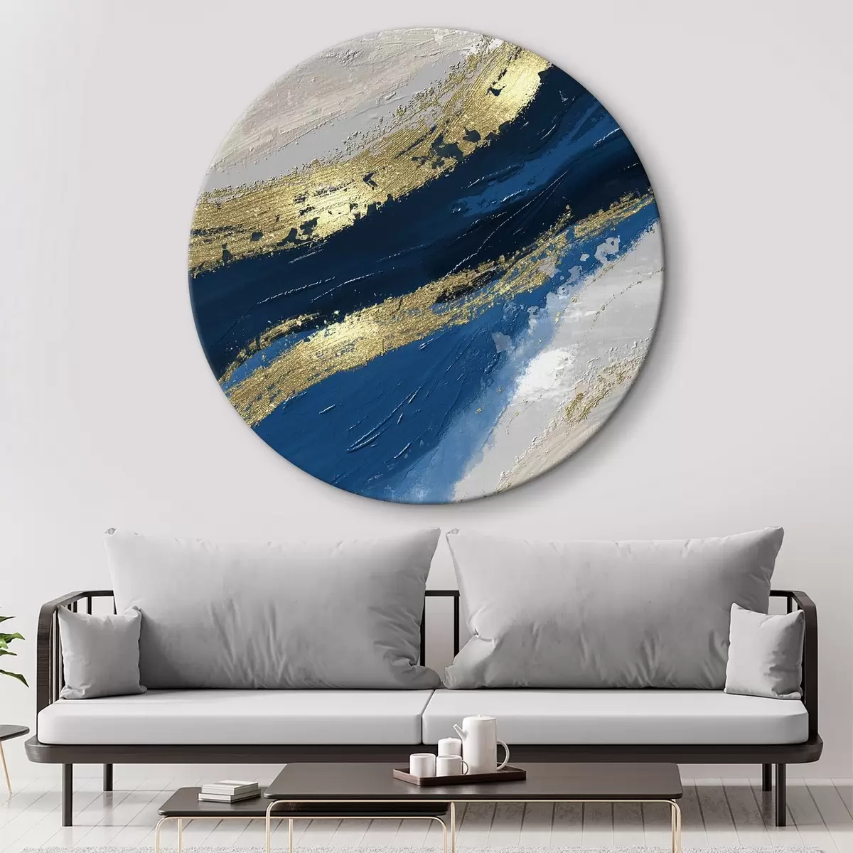 Quadri rotondi Eleganti volute in blu e bianco r36606