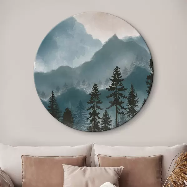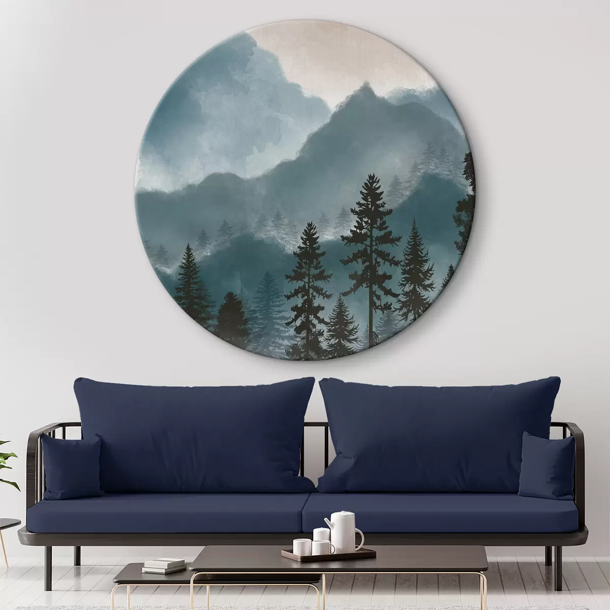 Quadri rotondi Montagne astratte dell'acquerello r36607
