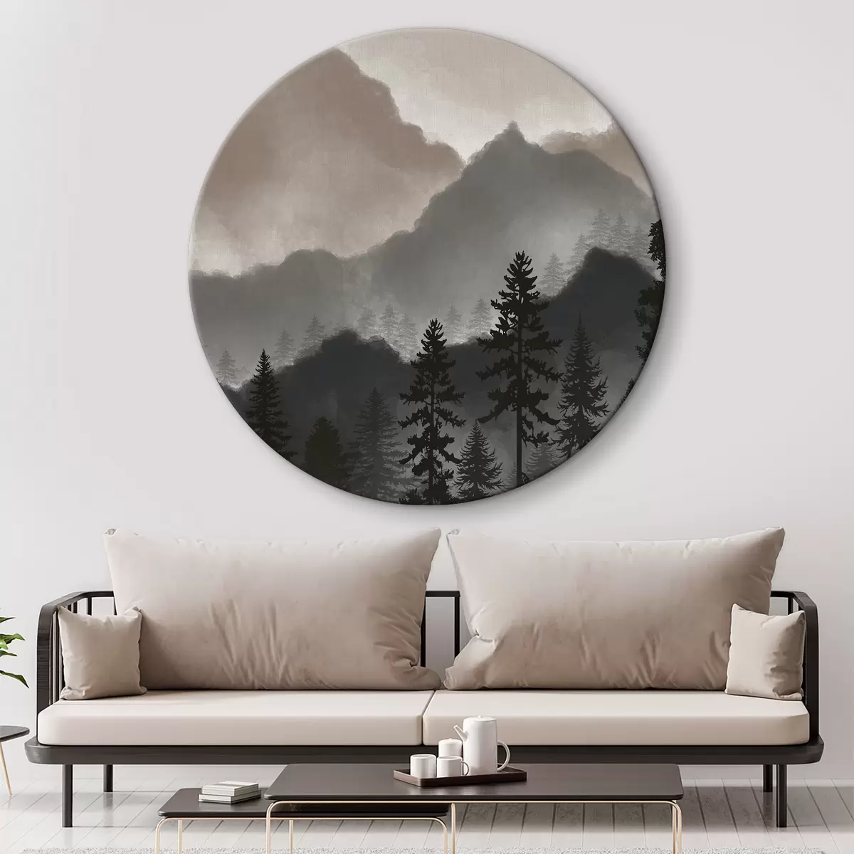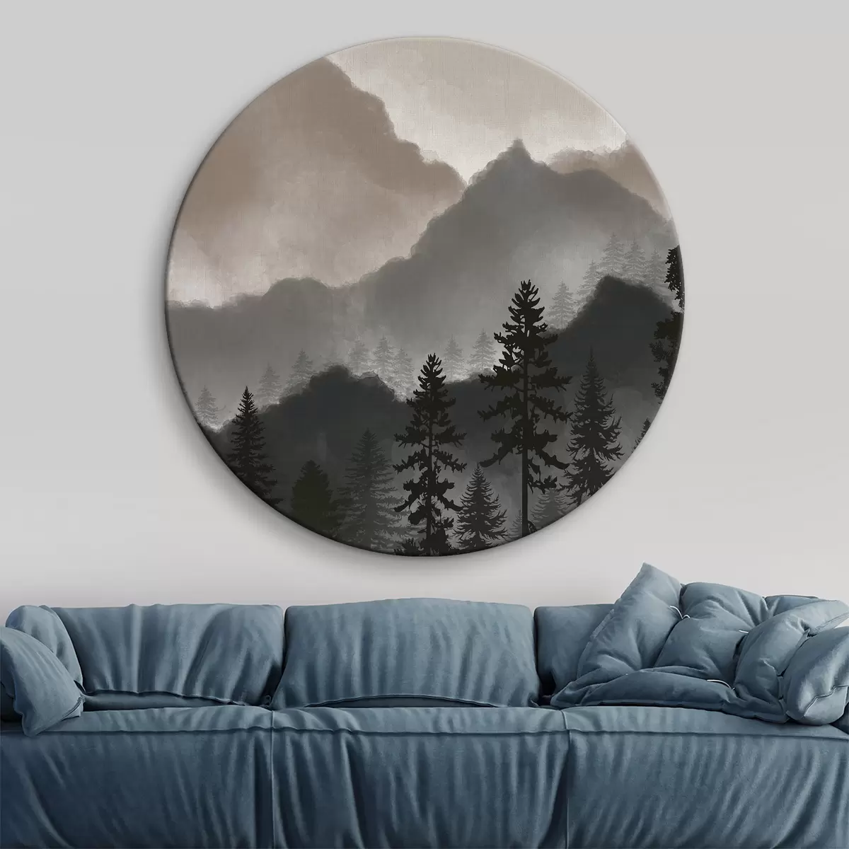 Quadri rotondi Montagne astratte dell'acquerello r36607v1