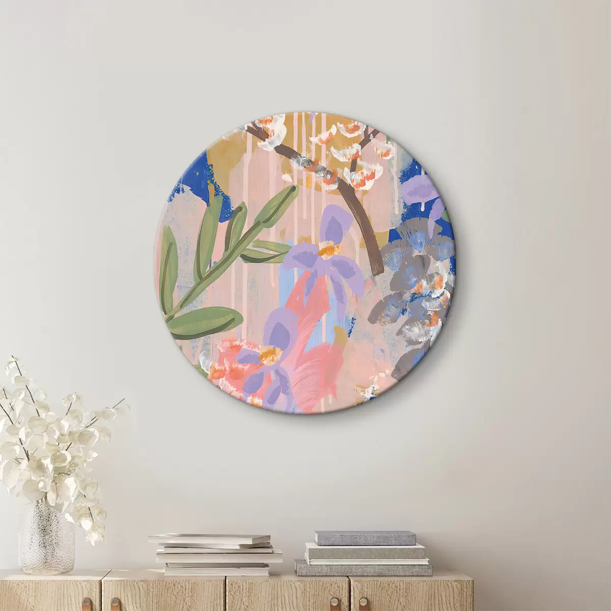 Quadri rotondi Un dipinto di fiori e foglie r36626