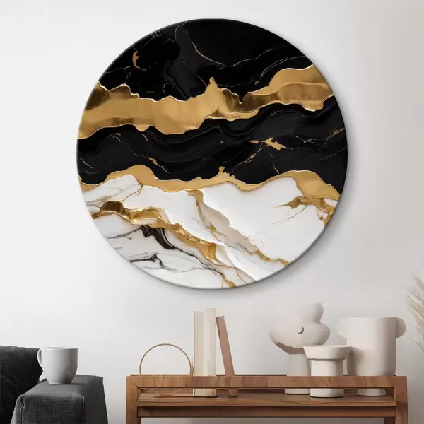 Quadri rotondi Astrattismo in bianco e nero su marmo con linea r36636