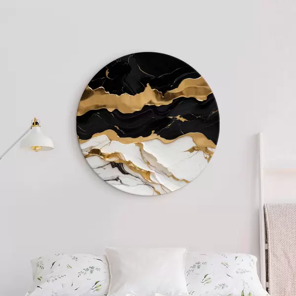 Quadri rotondi Astrattismo in bianco e nero su marmo con linea r36636