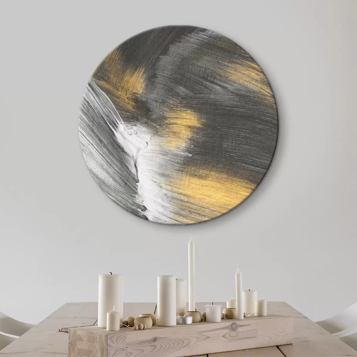 Quadri rotondi Le pennellate metalliche si intrecciano tra loro r36673