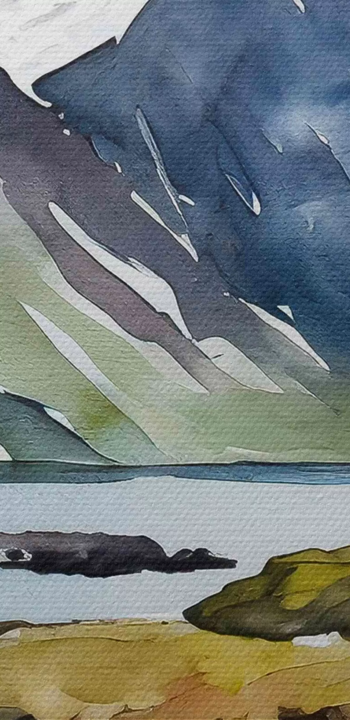 Immagine Acquerello raffigurante un lago e delle montagne Nr r36679