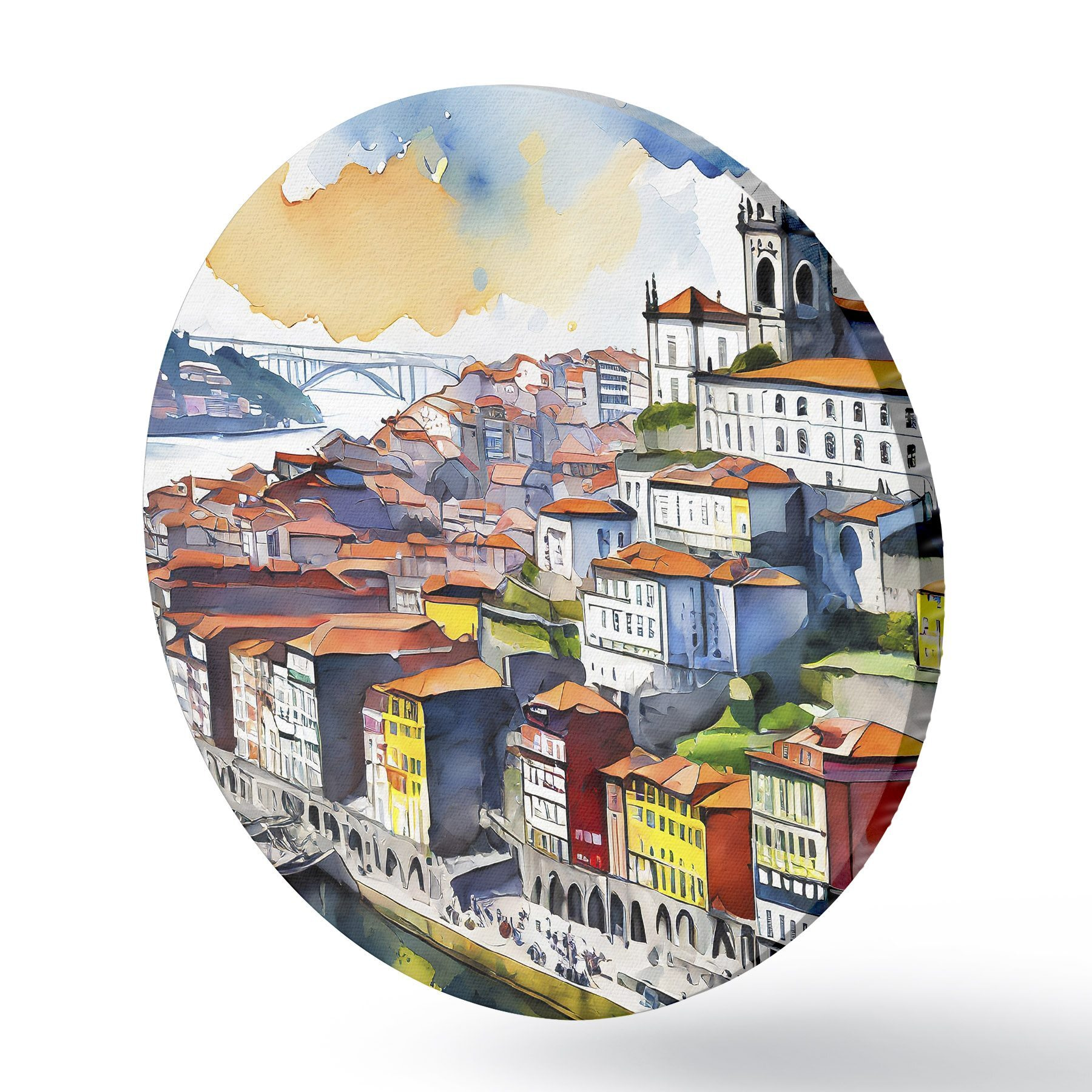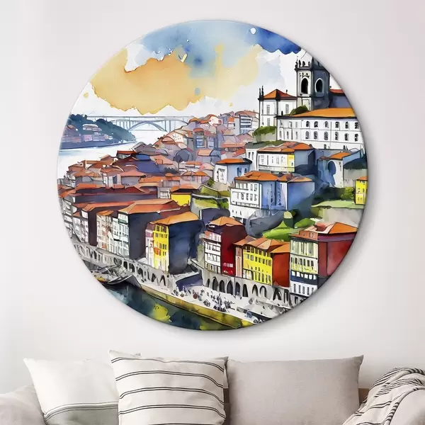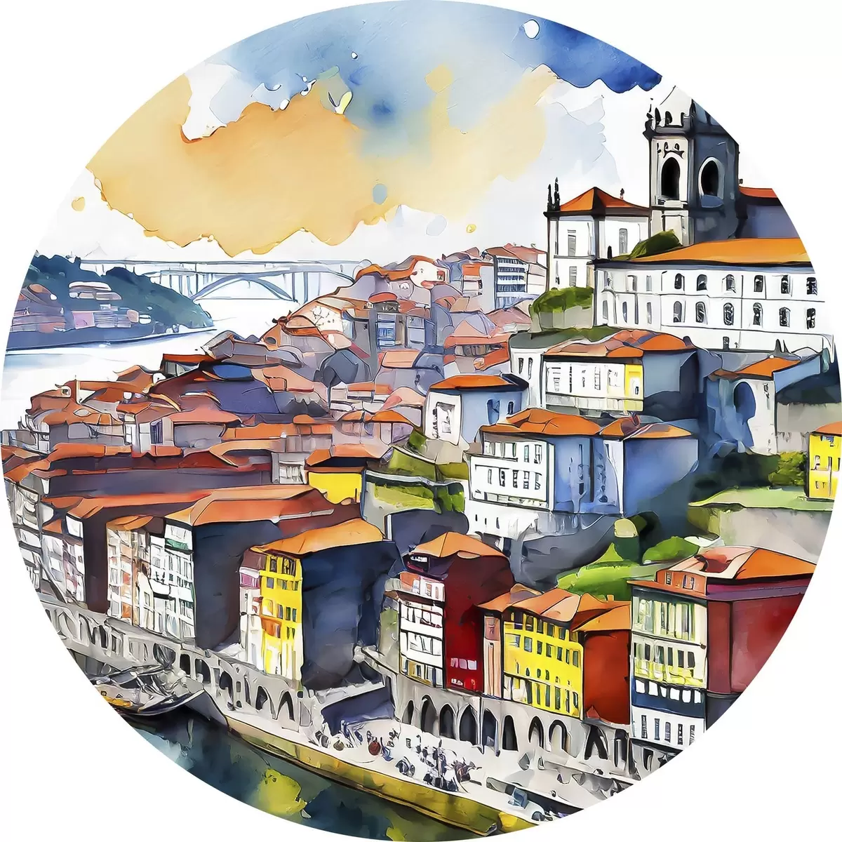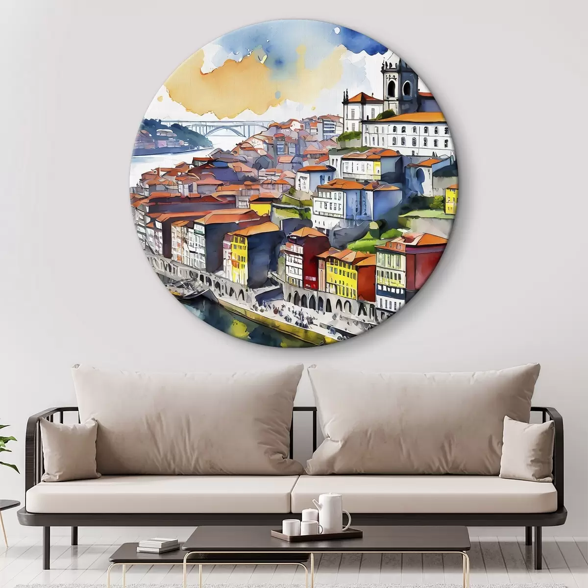 Quadri rotondi Acquerello della città di Porto, Portogallo, disegno architettonico r36680