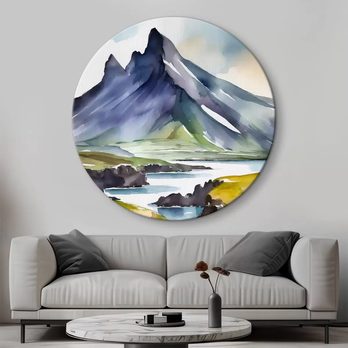 Quadri rotondi Islanda Natura Acquerello, Montagne, Cascate r36687