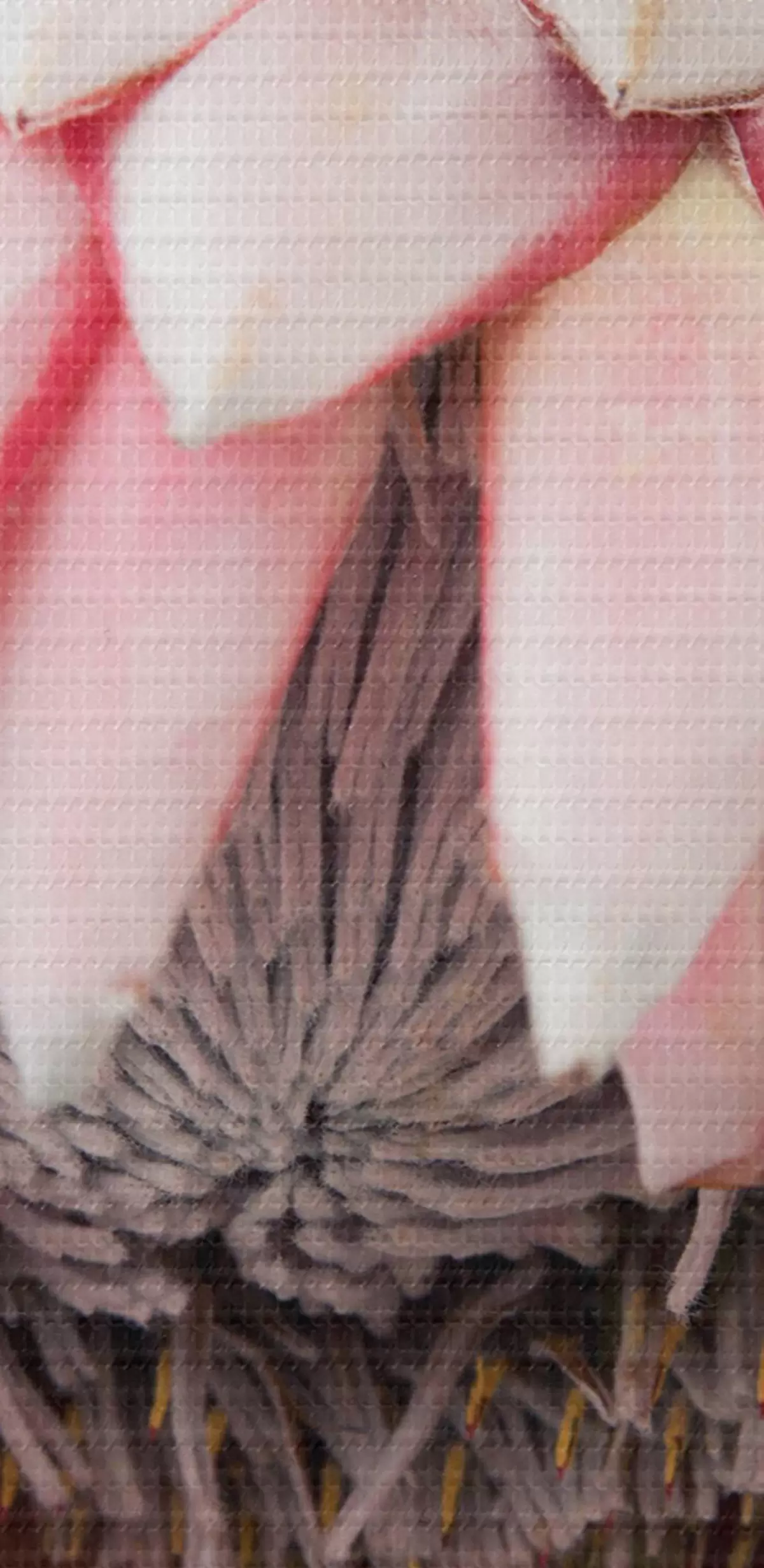 La fine trama dei fili di questa tela ricorda la superficie delle tele degli artisti professionisti.