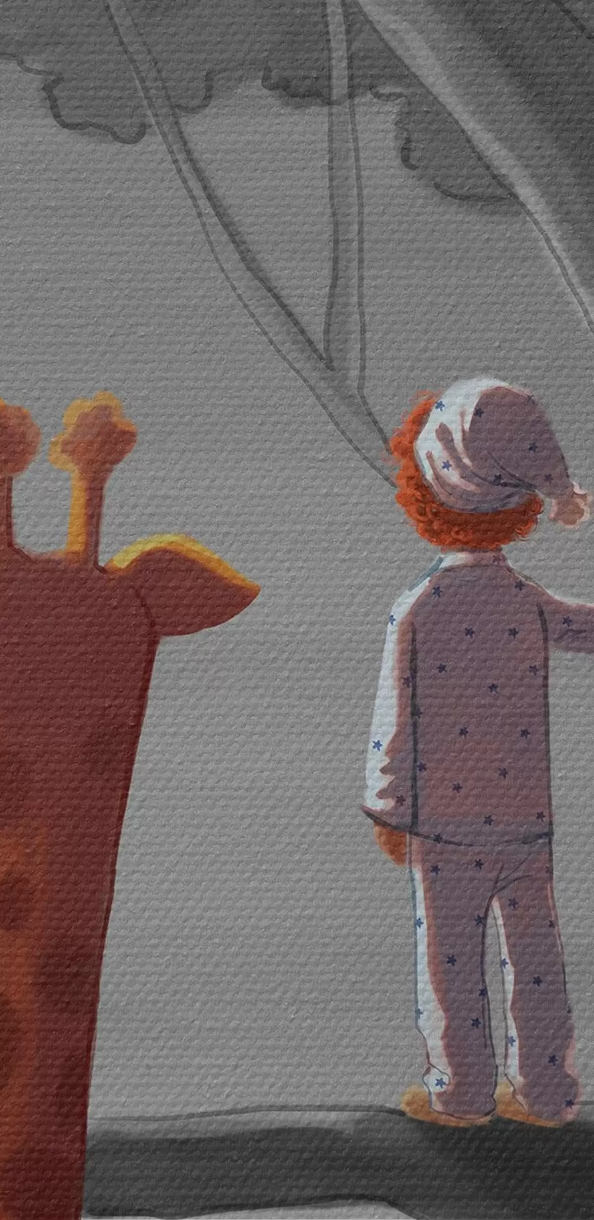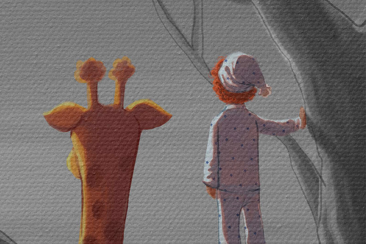 Immagine Giraffa e bambino in piedi su un albero Nr r36700