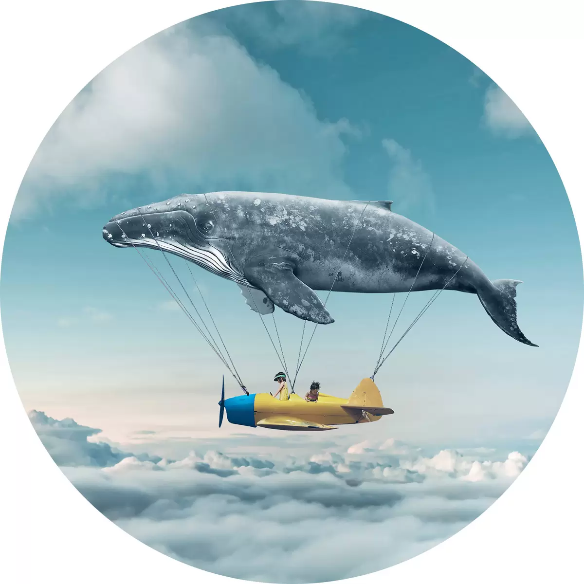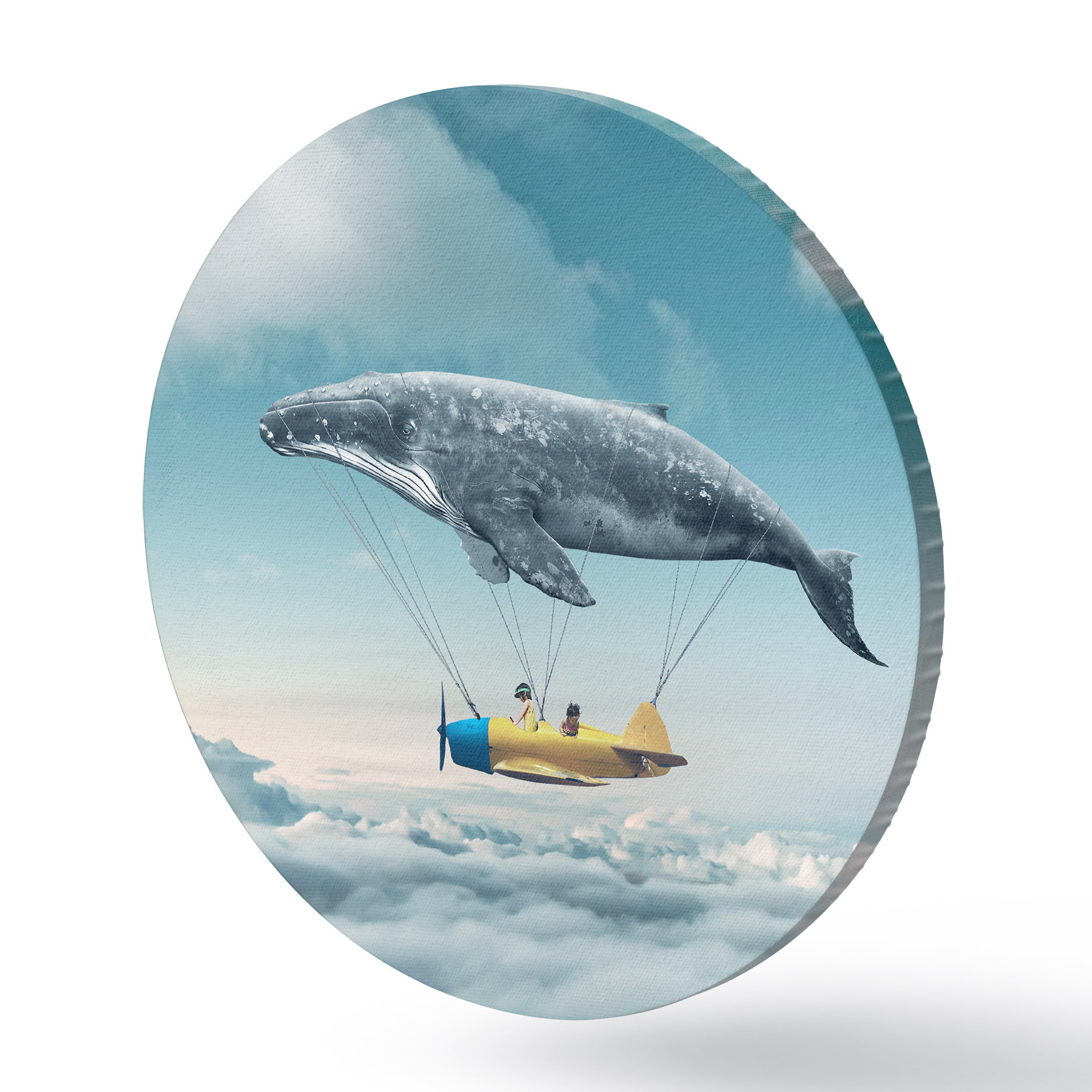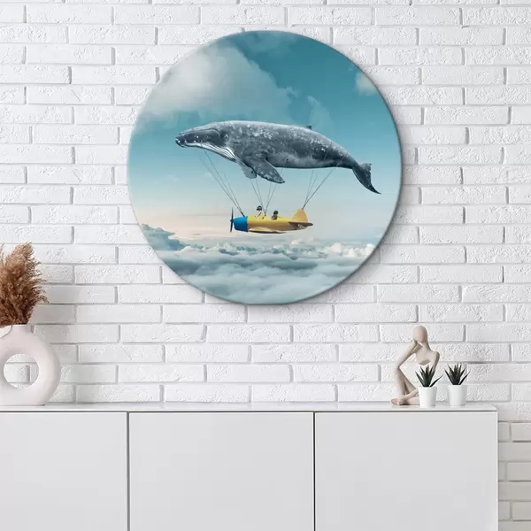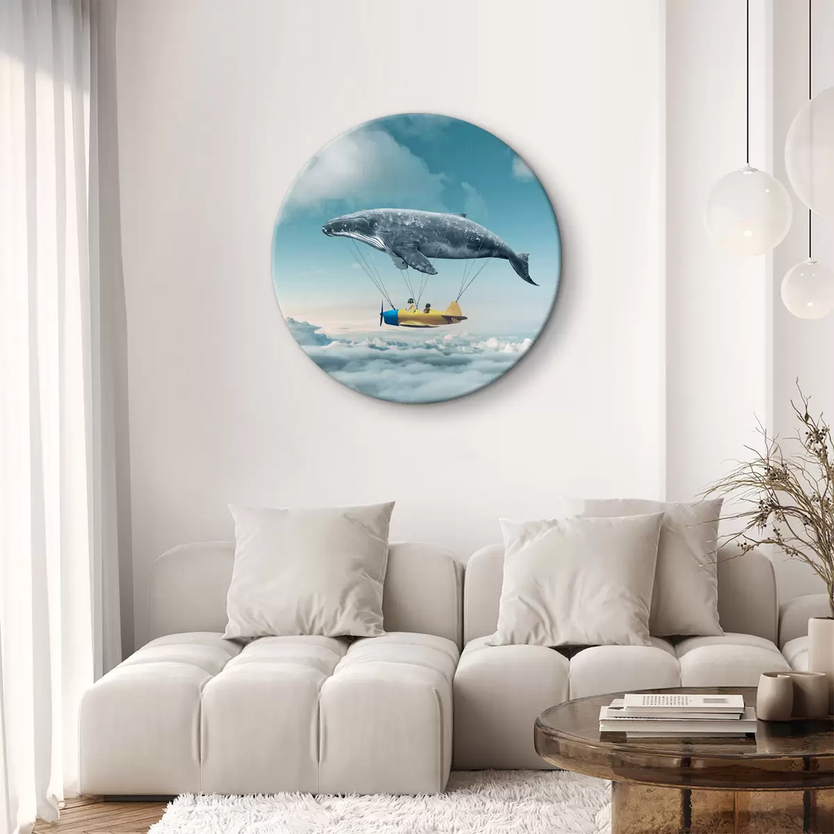 Quadri rotondi Una balena e una balena attaccata a un piccolo aereo r36701