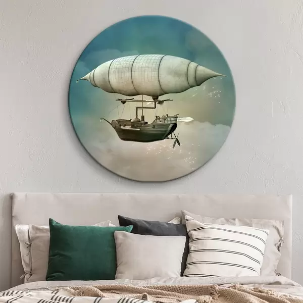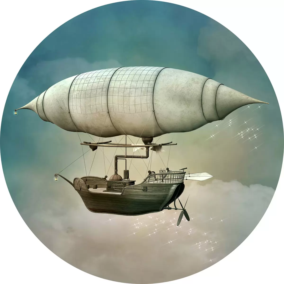Quadri rotondi Un dirigibile steampunk nel cielo r36706