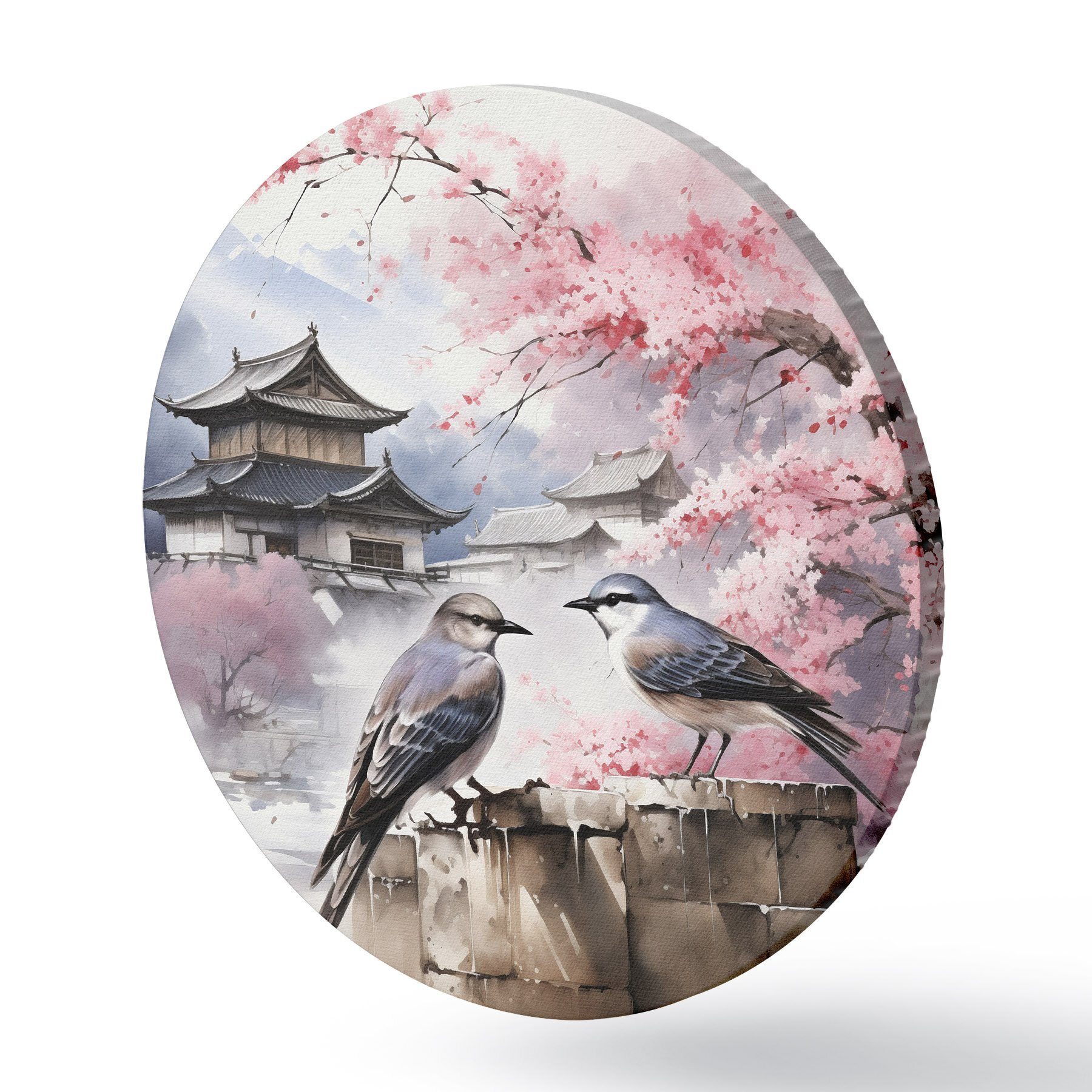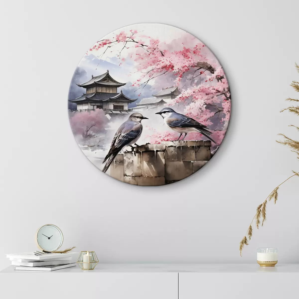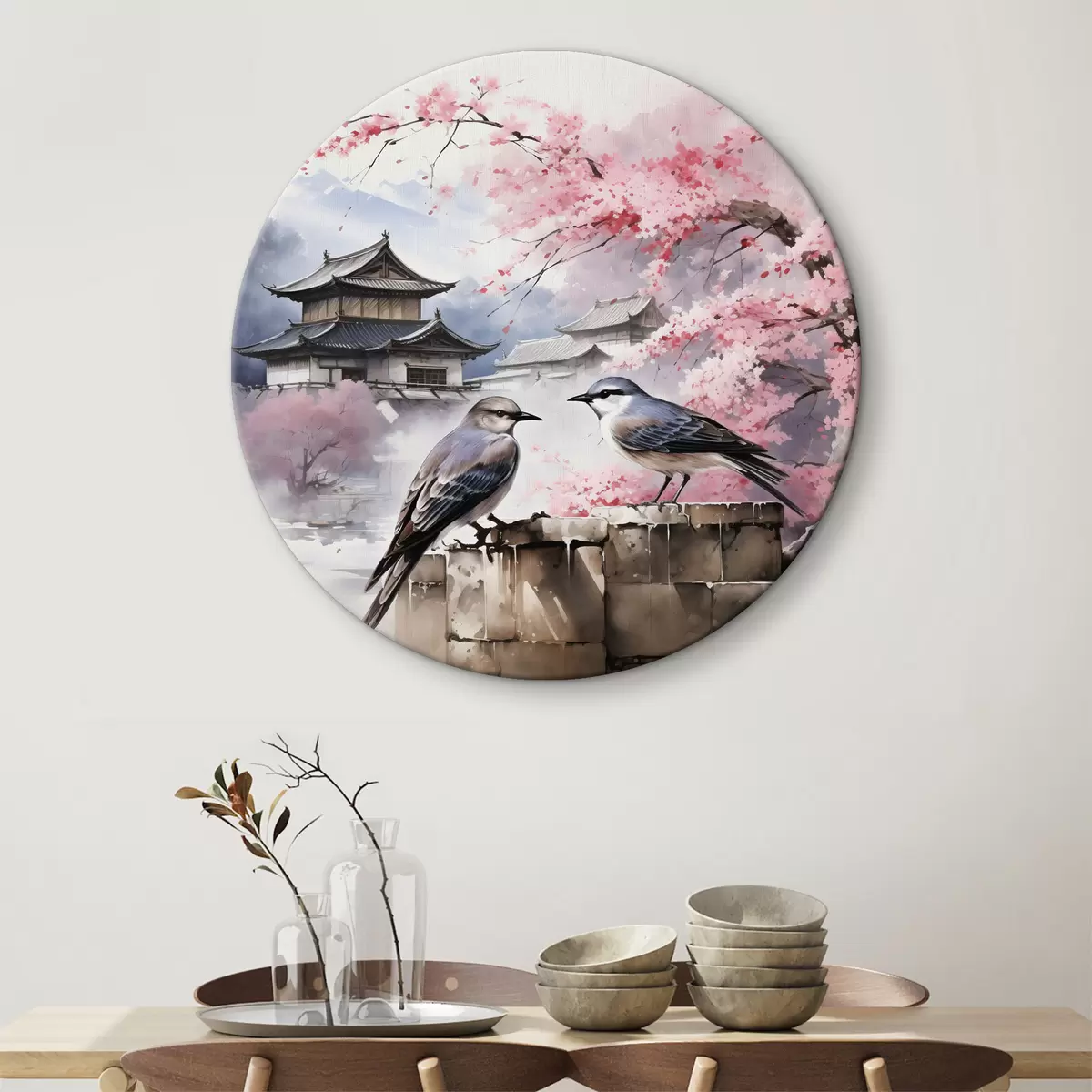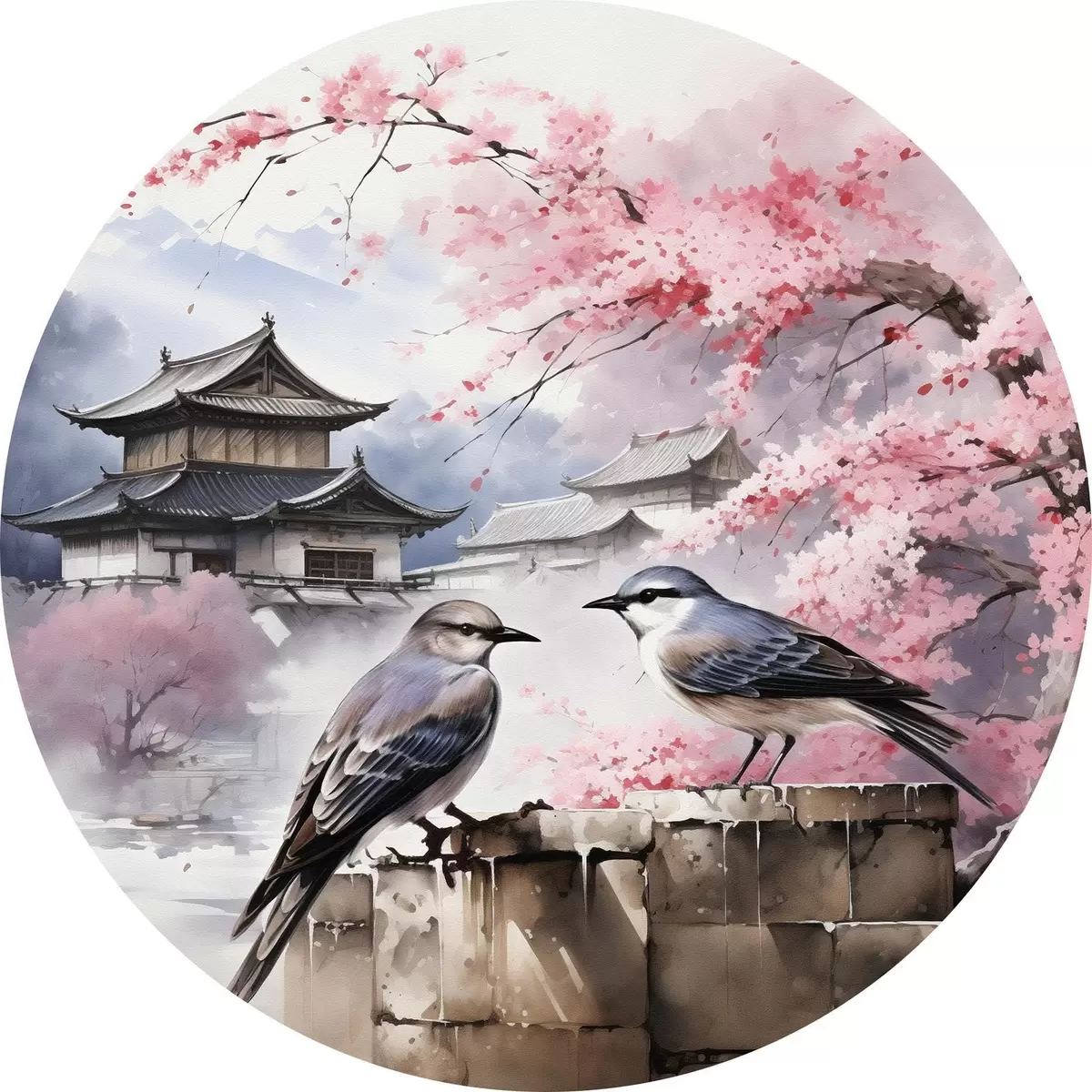 Quadri rotondi Due uccelli sullo sfondo di sakura in fiore r36815