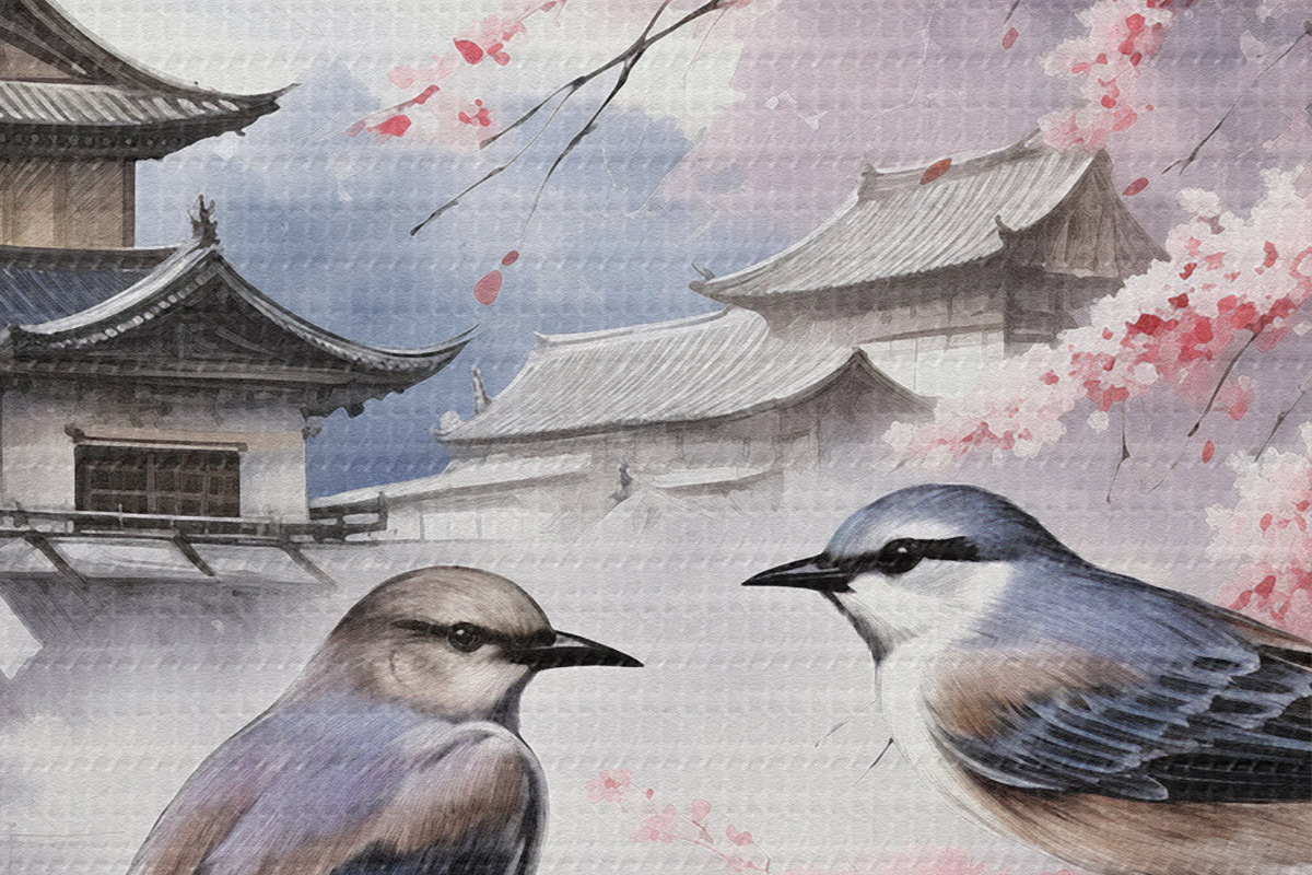Immagine Due uccelli sullo sfondo di sakura in fiore Nr r36815