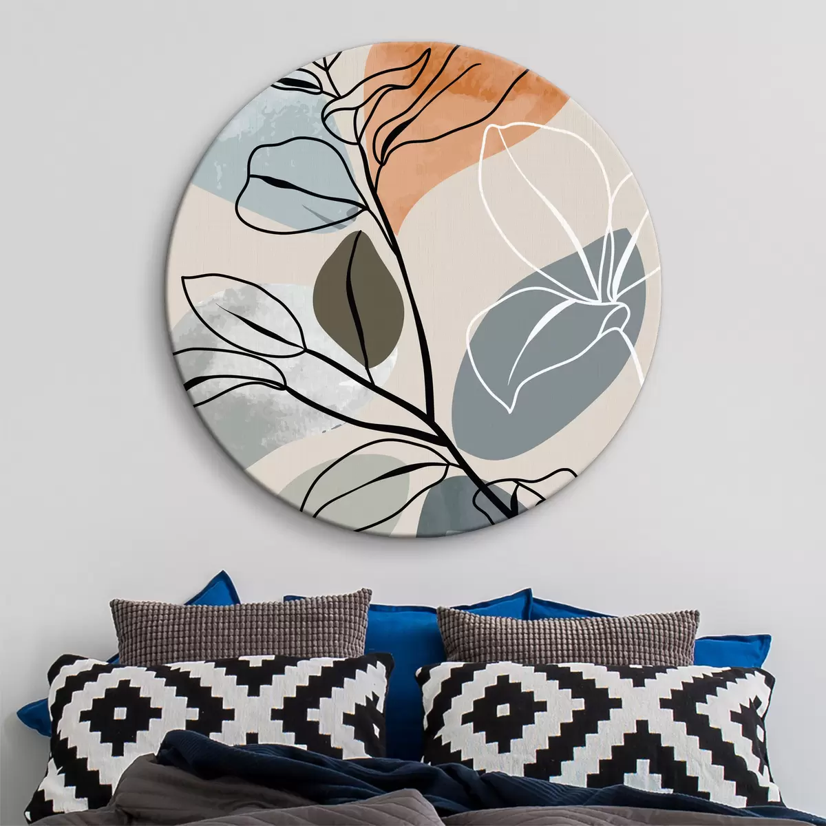 Quadri rotondi Foglie acquerellate in stile bohémien r36817