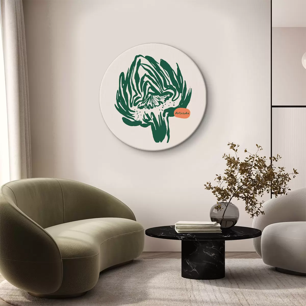 Quadri rotondi Disegno di una pianta in verde e bianco r36868