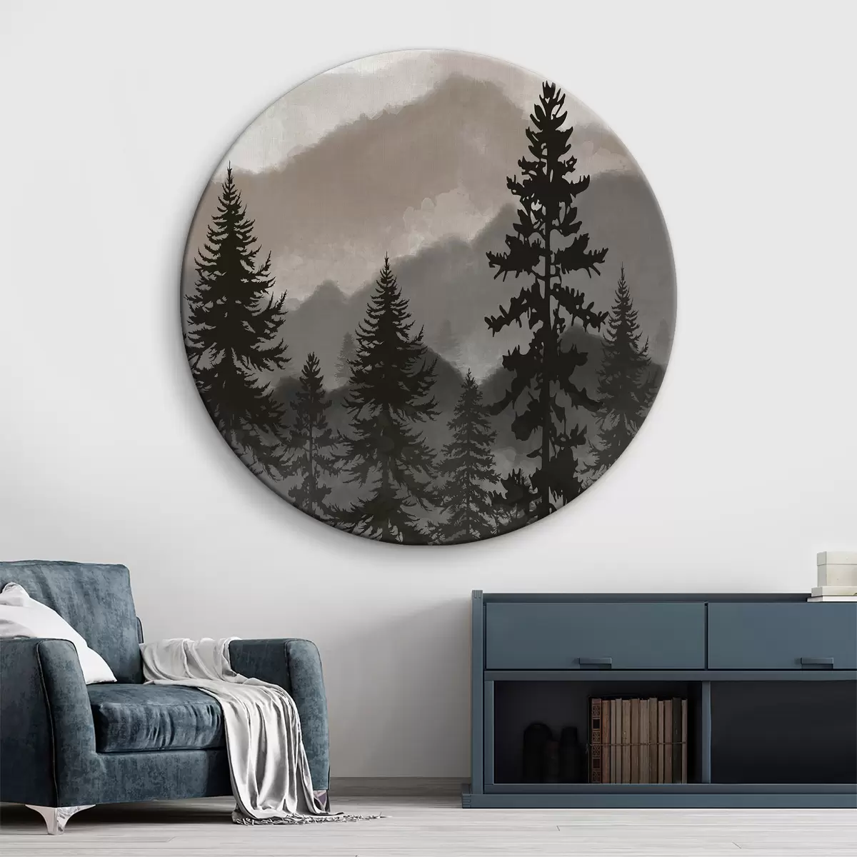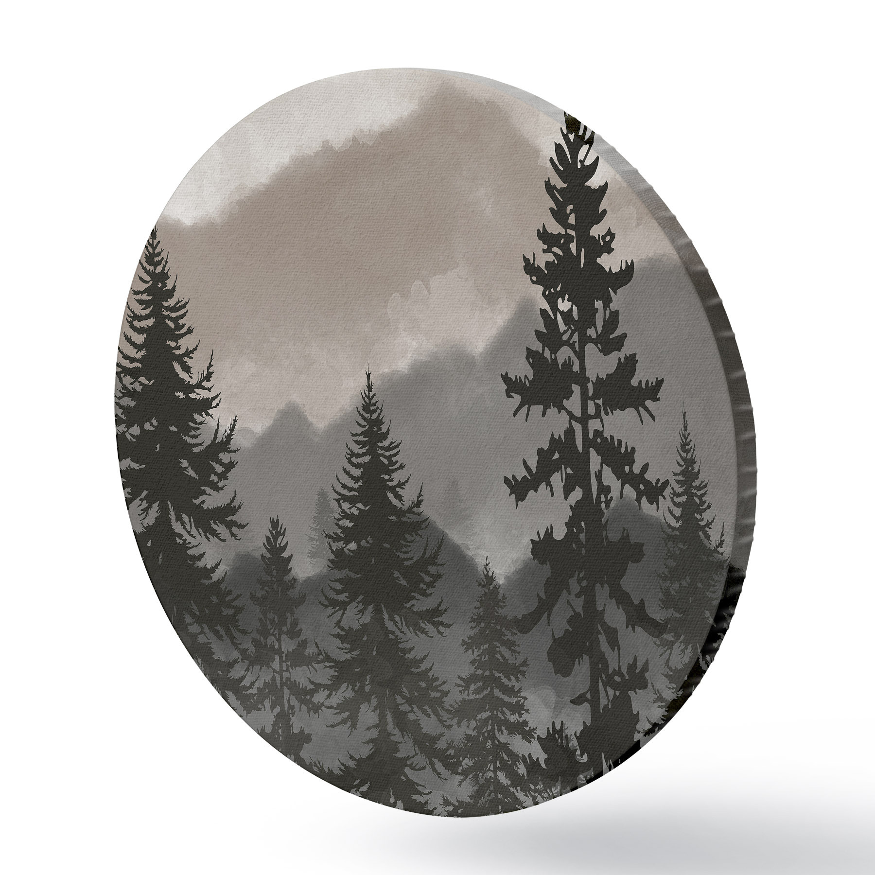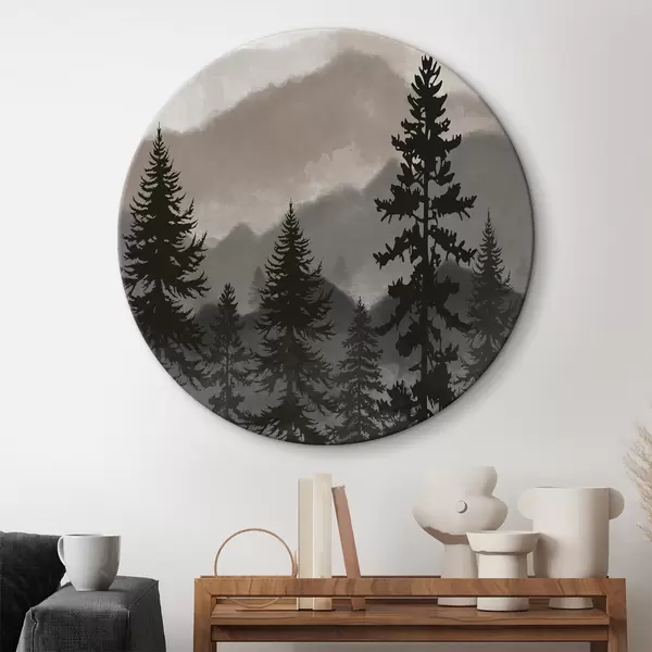 Quadri rotondi Paesaggio montano con abeti in acquerello r37017v1