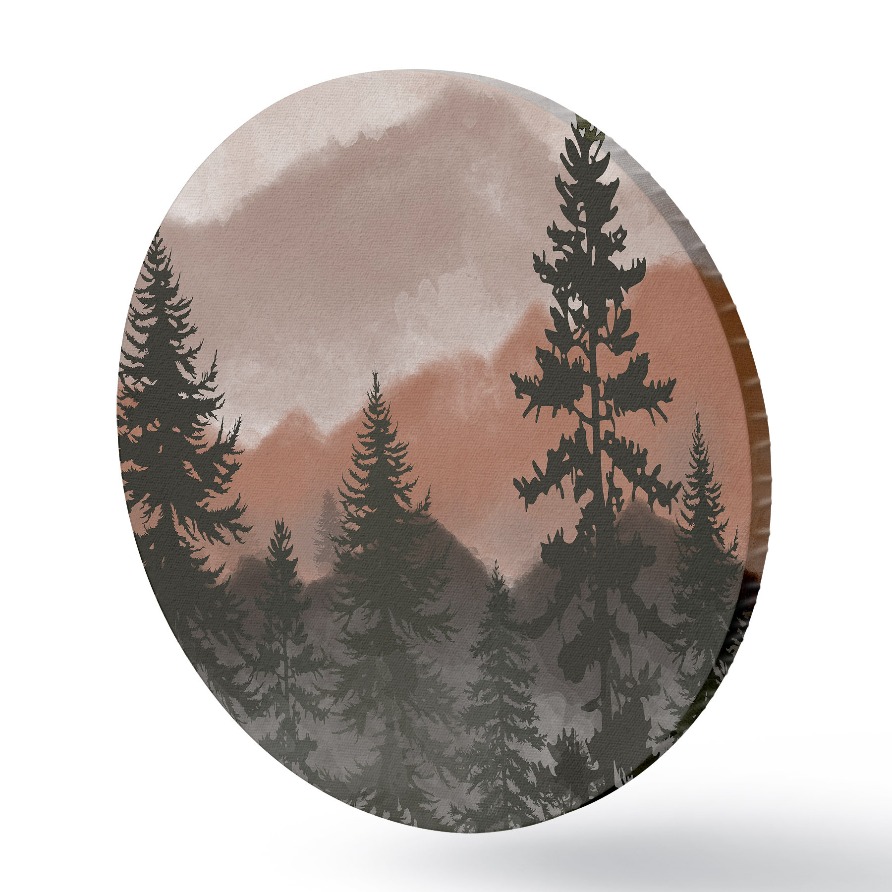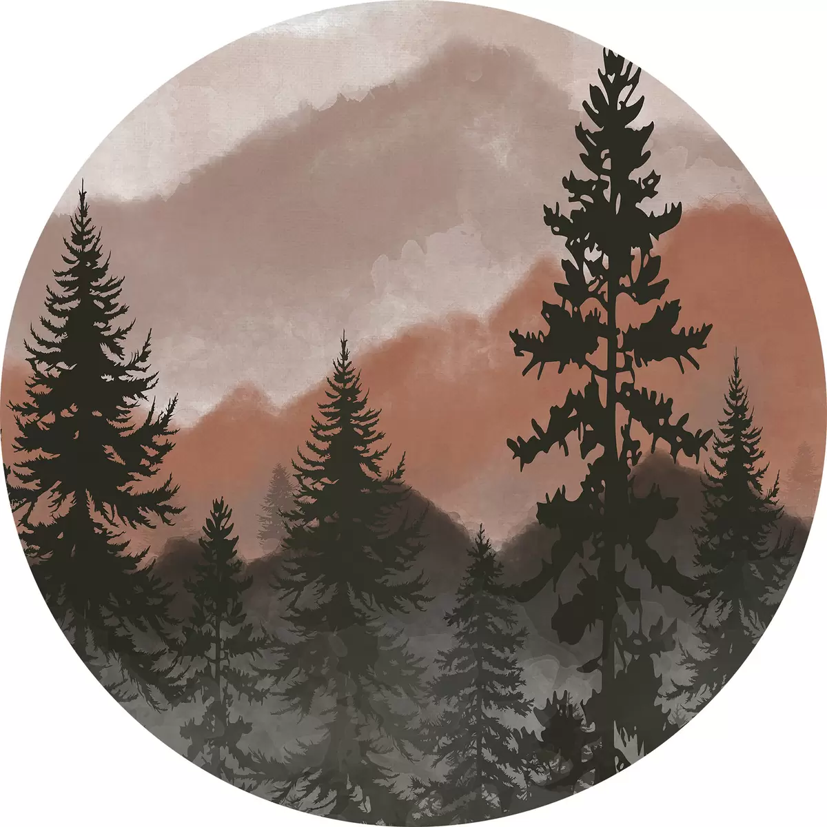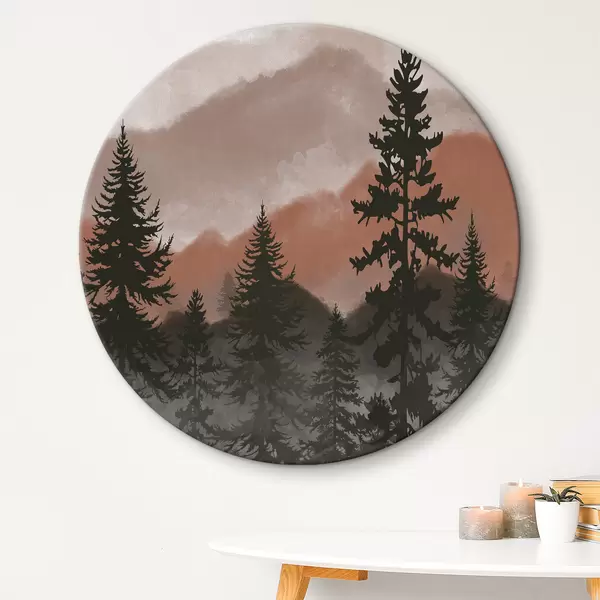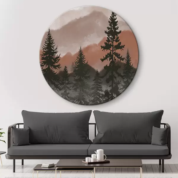 Quadri rotondi Paesaggio montano con abeti in acquerello r37017v2
