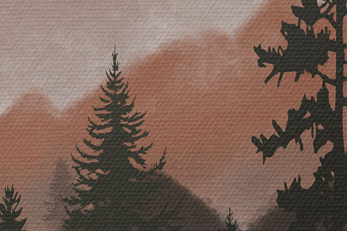 Immagine Paesaggio montano con abeti in acquerello Nr r37017v2