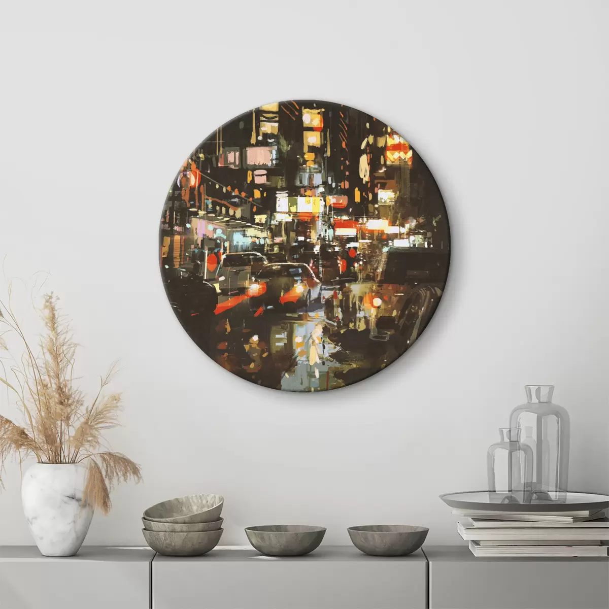 Quadri rotondi Strada cittadina con auto e luci r37097