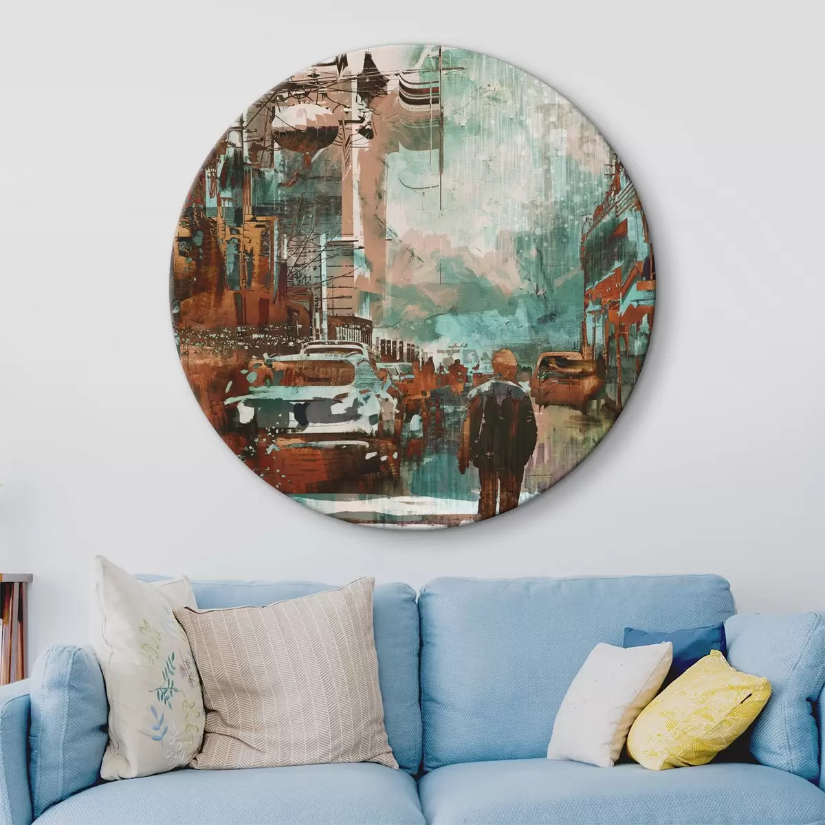 Quadri rotondi Grande metropoli retrò in stile grunge r37112