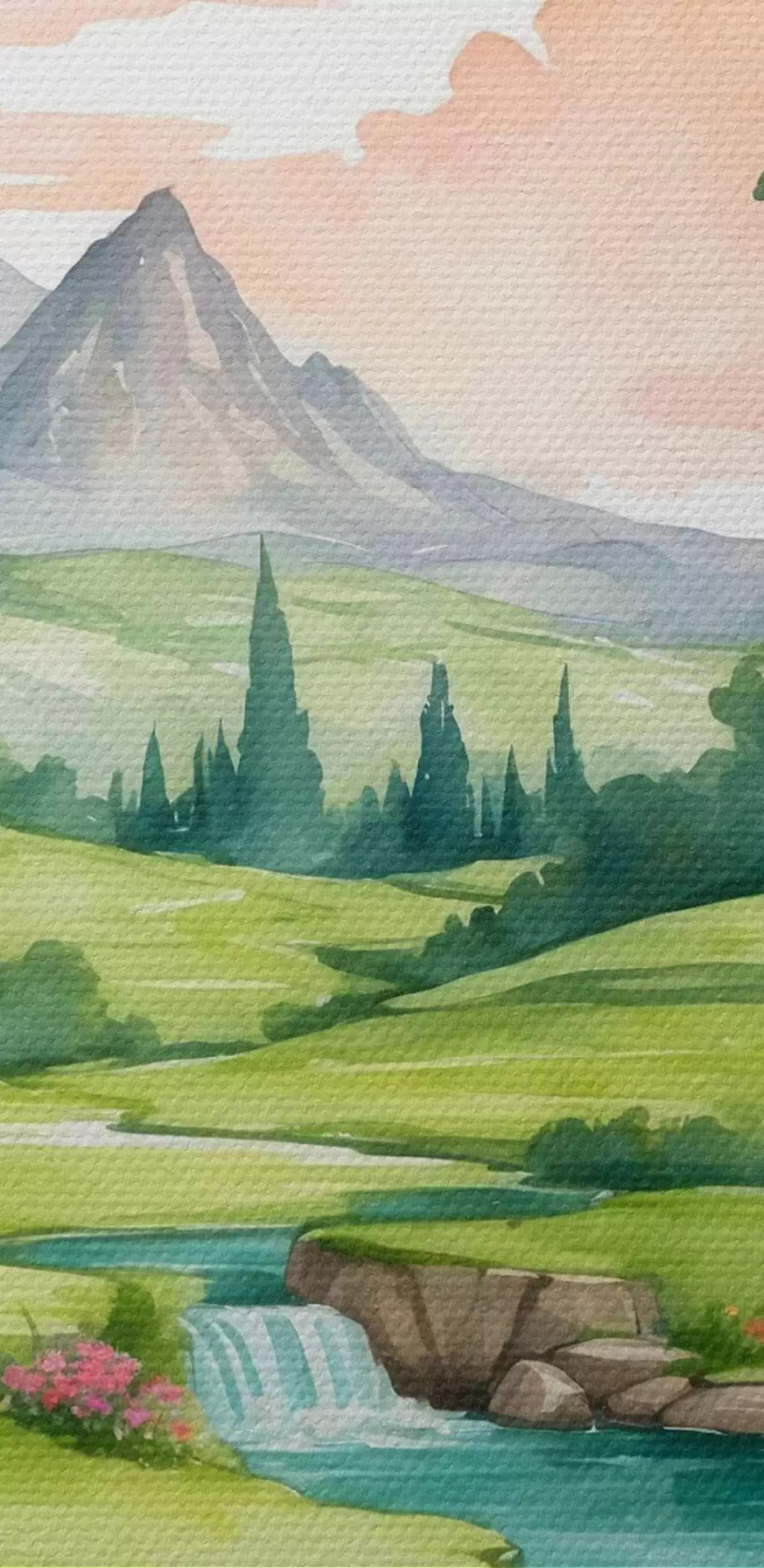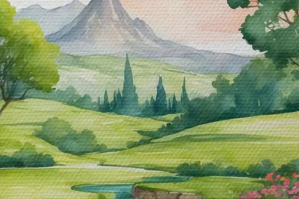 Immagine Acquerello raffigurante un fiume e dei fiori Nr r37116