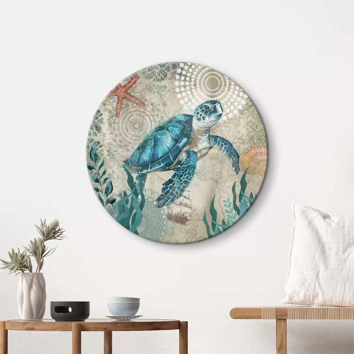 Quadri rotondi Tartaruga marina blu che nuota nell'oceano r37151