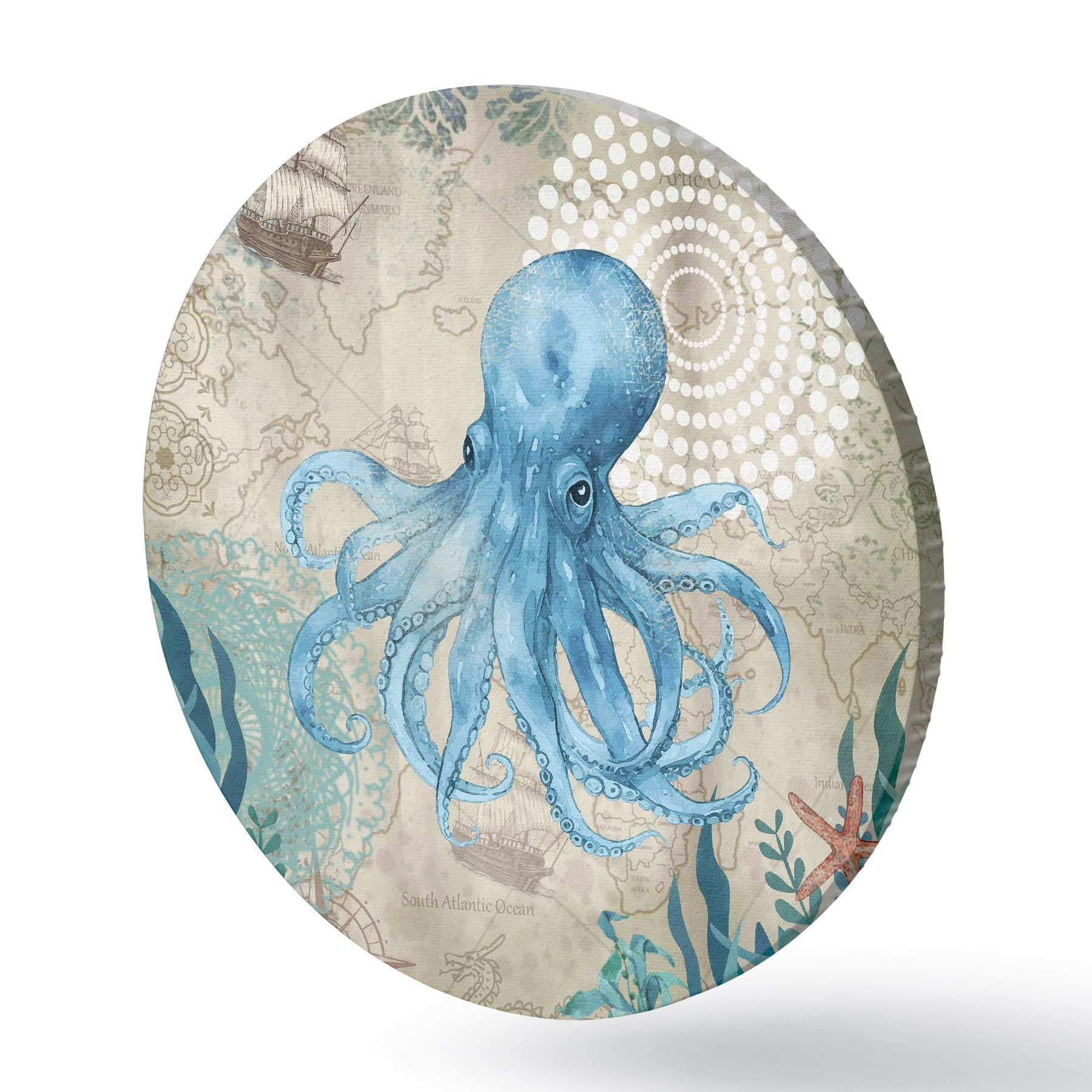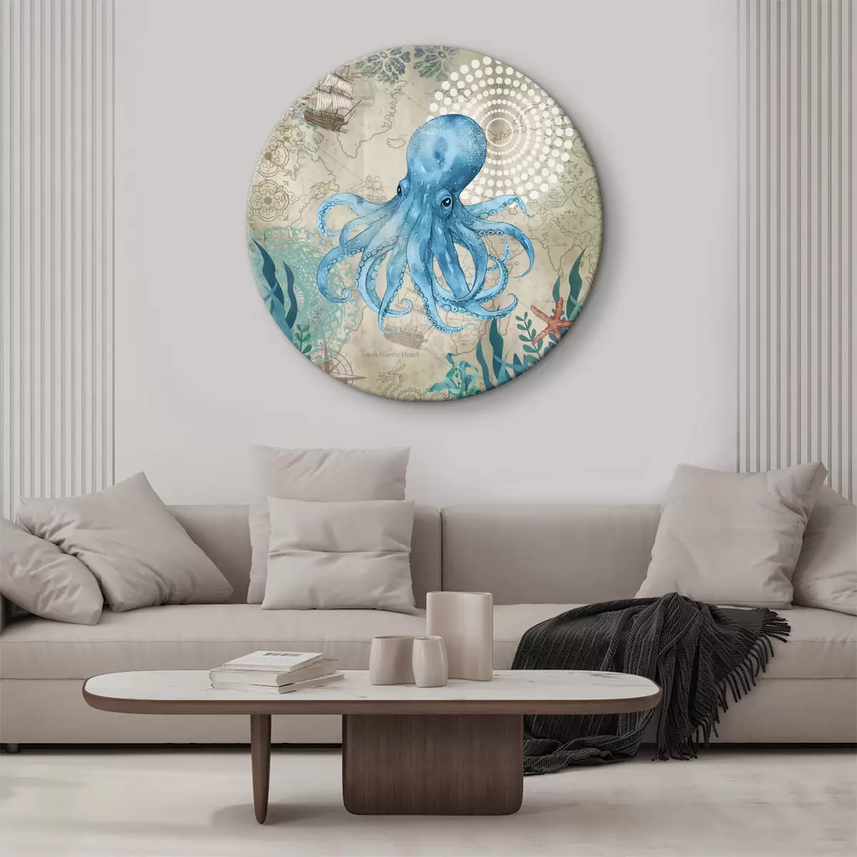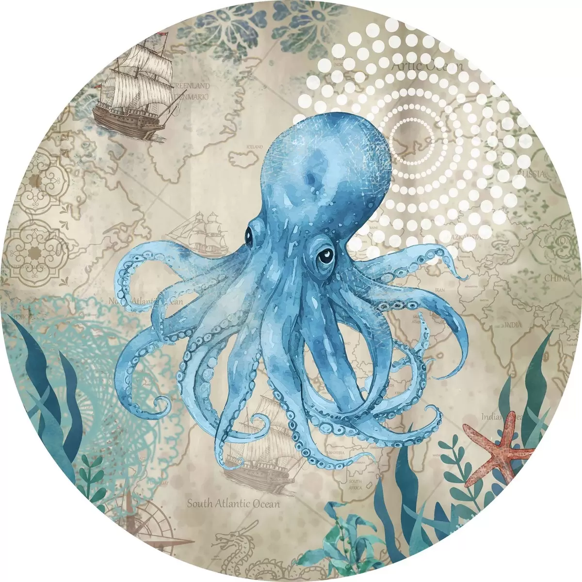Quadri rotondi Polpo blu con mappa dell'oceano r37154