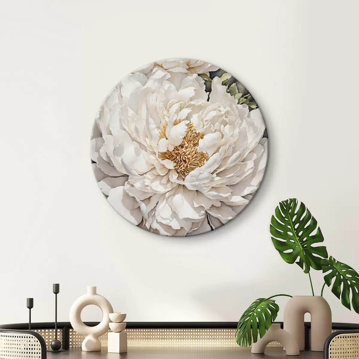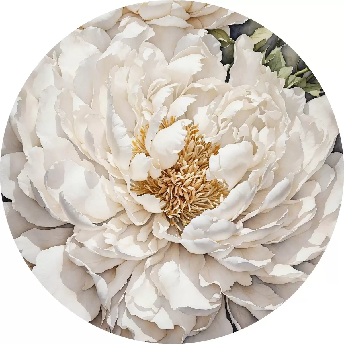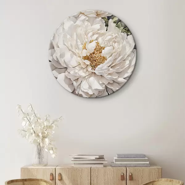 Quadri rotondi Peonia bianca su sfondo grigio r37160