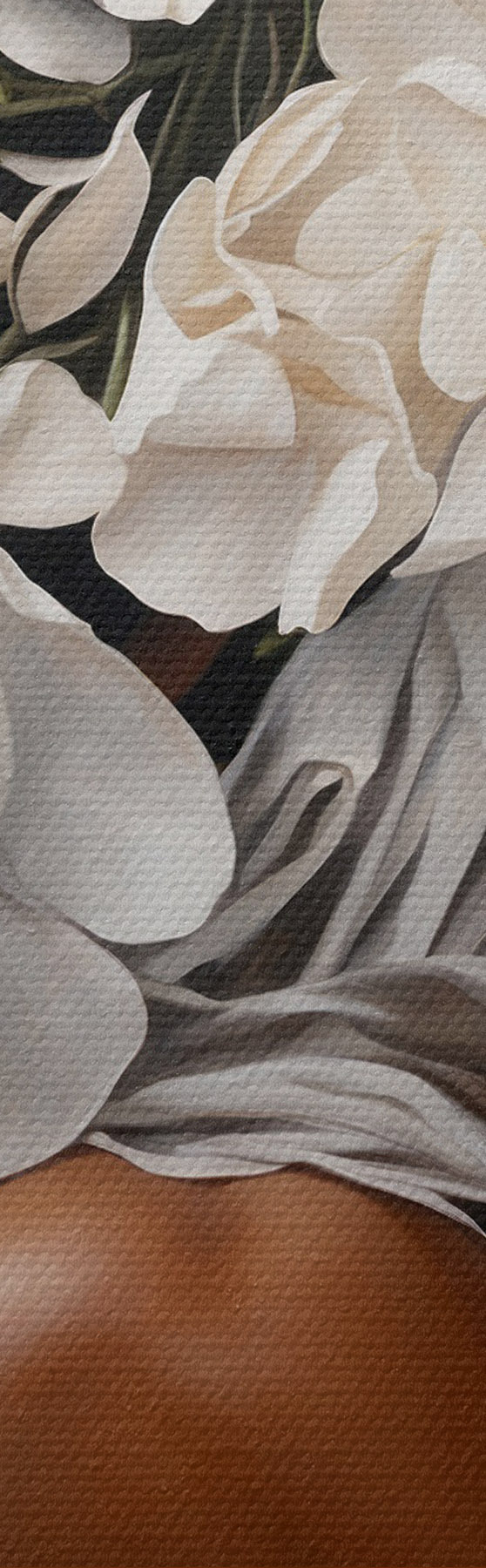La fine trama dei fili di questa tela ricorda la superficie delle tele degli artisti professionisti.