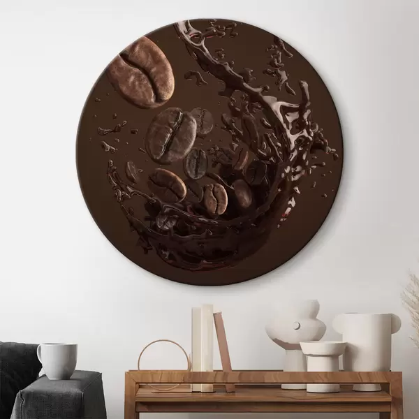 Quadri rotondi Effetto grafico del caffè e dei chicchi di caffè r37176