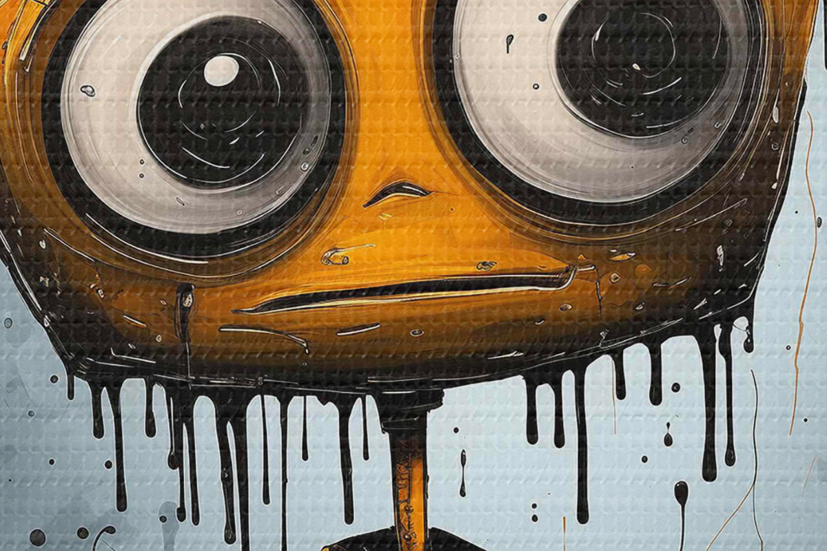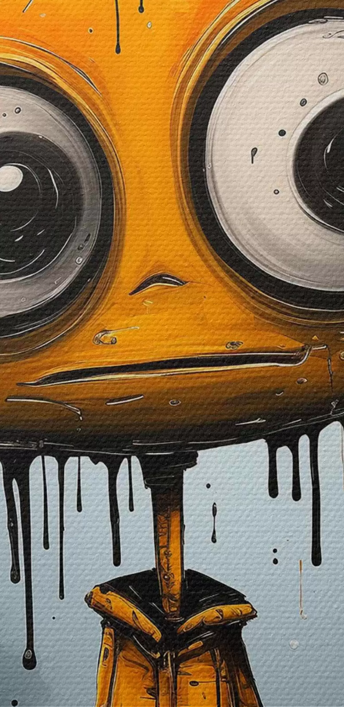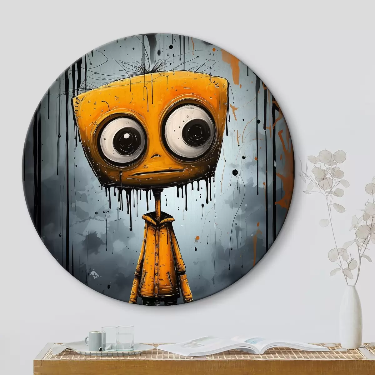 Quadri rotondi Personaggio dei cartoni animati con testa quadrata e occhi grandi r37254